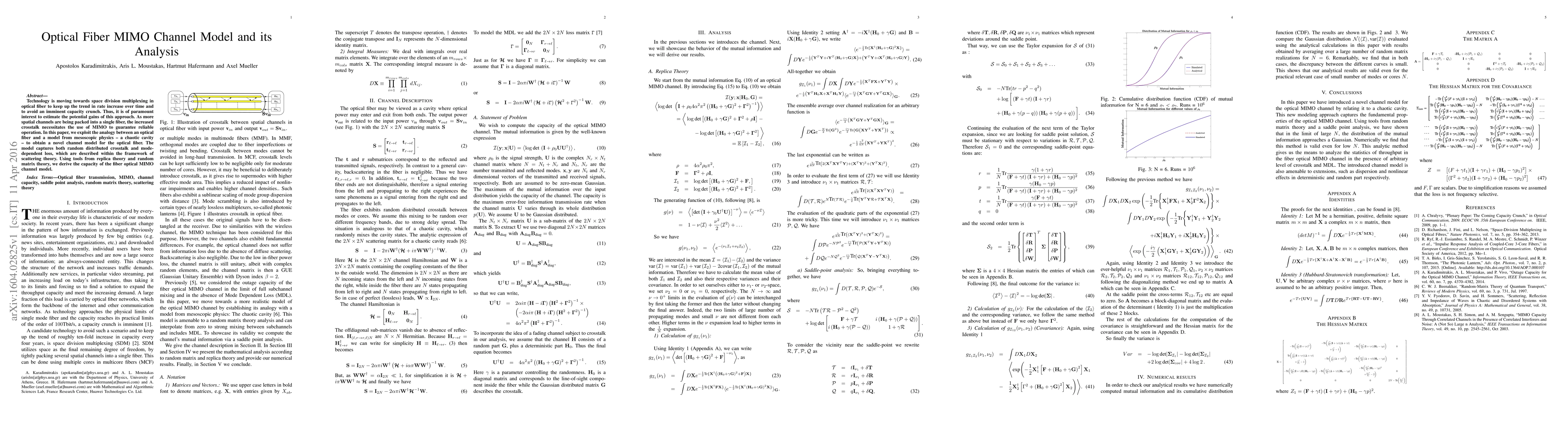 Researchers develop a novel optical fiber channel model using analogy with chaotic cavity physics to estimate gains of space division multiplexing, capturing crosstalk and loss, and deriving channel capacity.