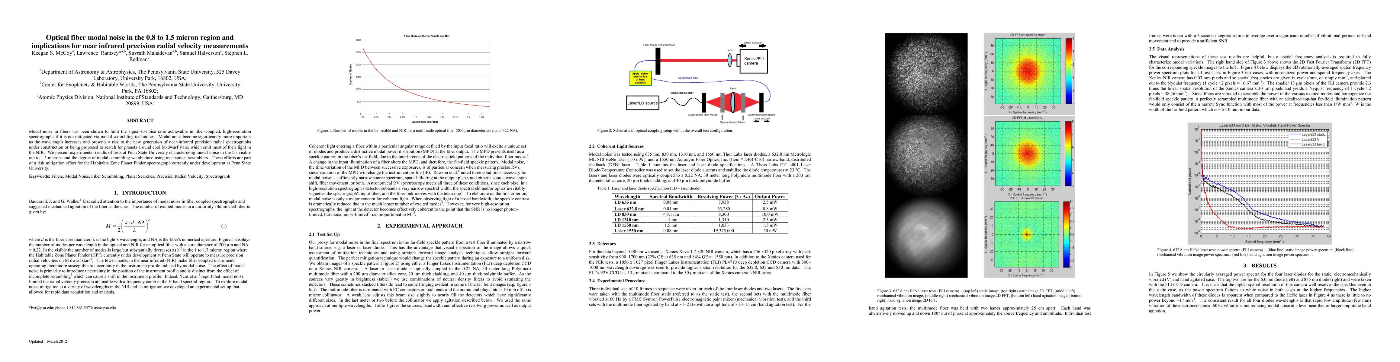 Researchers studied modal noise in optical fibers and found it poses a risk to precision radial velocity measurements in near-infrared spectrographs. They developed methods to mitigate this noise using mechanical scramblers, crucial for upcoming exoplanet detection missions.