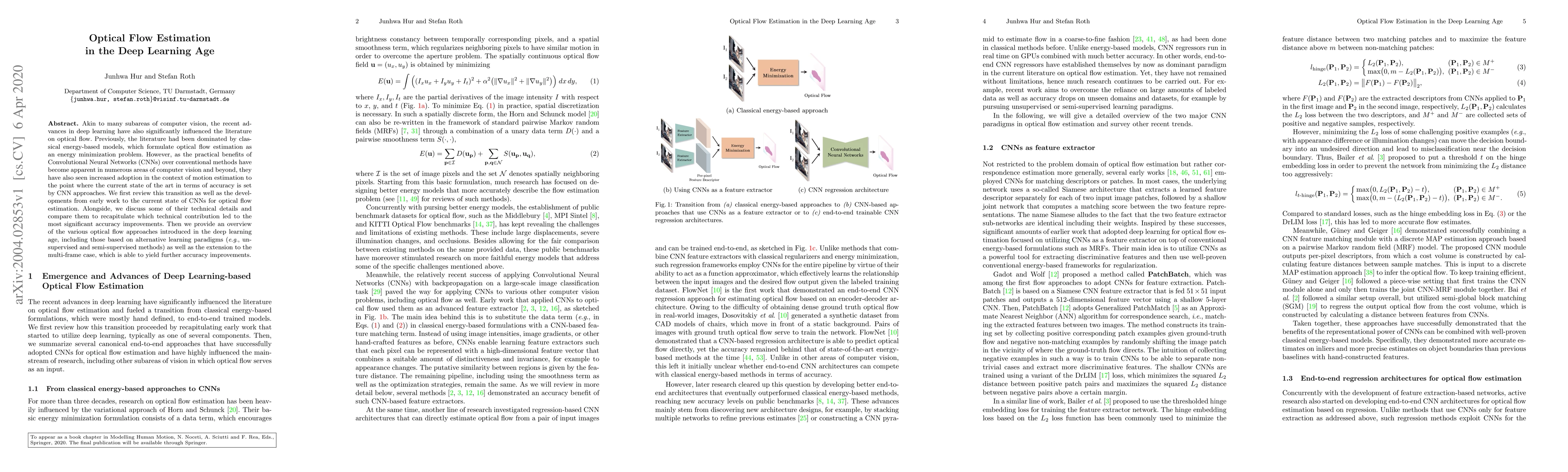 Recent advances in deep learning have surpassed classical energy-based models for optical flow estimation, yielding significant accuracy improvements. This paper reviews the transition to CNNs in motion estimation and introduces various approaches, including alternative learning paradigms and multi-frame cases.