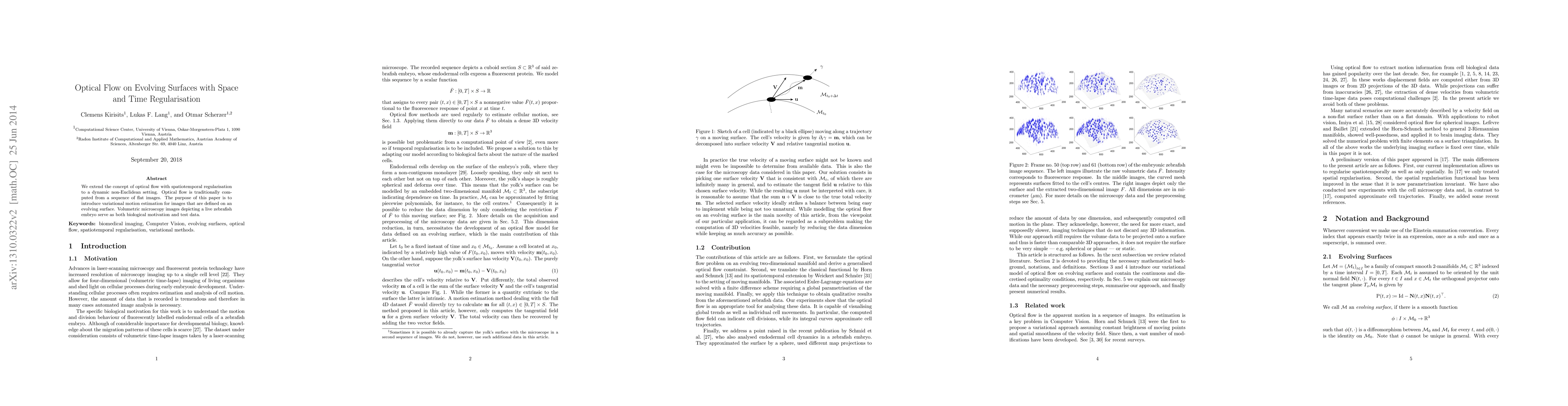 We extend the concept of optical flow with spatiotemporal regularisation to a dynamic non-Euclidean setting. Optical flow is traditionally computed from a sequence of flat images. The purpose of this paper is to introduce variational motion estimation for images that are defined on an evolving surface. Volumetric microscopy images depicting a live zebrafish embryo serve as both biological motivation and test data.