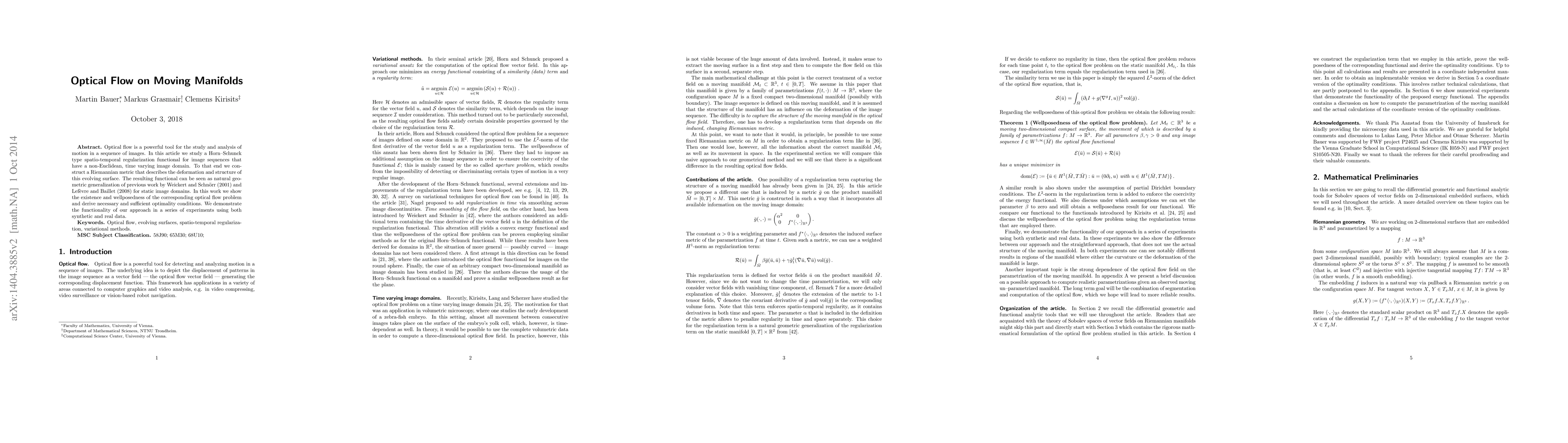This paper develops a method for analyzing motion in non-Euclidean image domains using optical flow, showing its existence and optimality conditions, and demonstrating its functionality with synthetic and real data.
