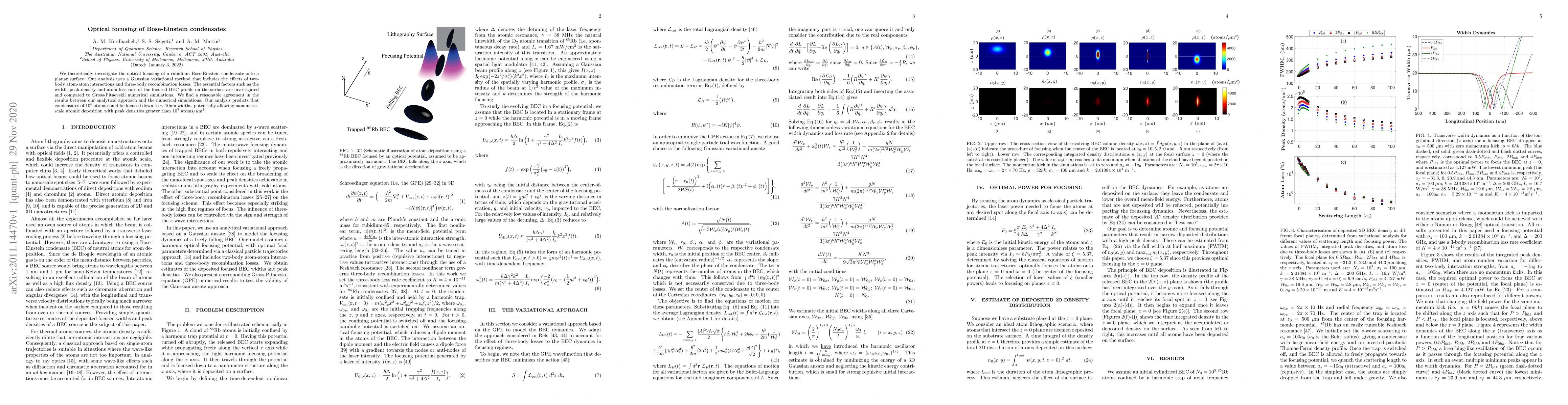 The paper presents a novel Gaussian variational method to model the focusing dynamics of BECs, considering atom-atom interactions and three-body recombination losses.