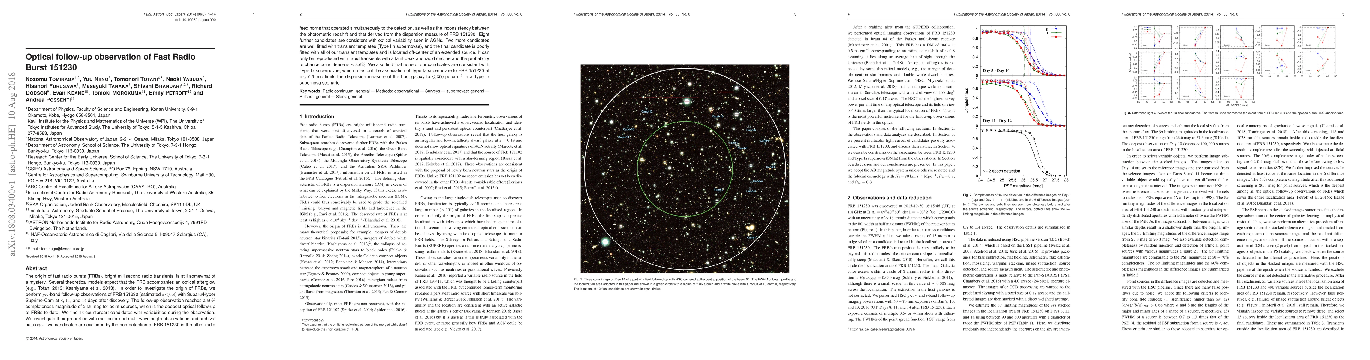 This study conducts deep optical follow-up observations of FRB 151230, identifying 13 counterpart candidates, but none conclusively match the expected FRB afterglow. The findings rule out Type Ia supernovae as the source and suggest the host galaxy's dispersion measure is limited.