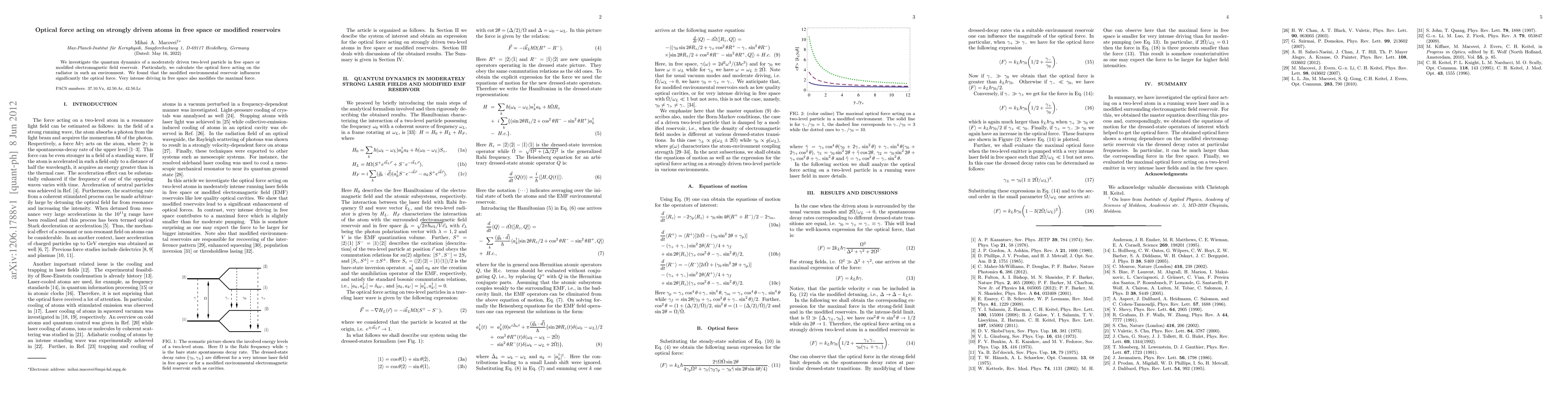 We investigate the quantum dynamics of a moderately driven two-level particle in free space or modified electromagnetic field reservoir. Particularly, we calculate the optical force acting on the radiator in such an environment. We found that the modified environmental reservoir influences significantly the optical force. Very intense driving in free space also modifies the maximal force.