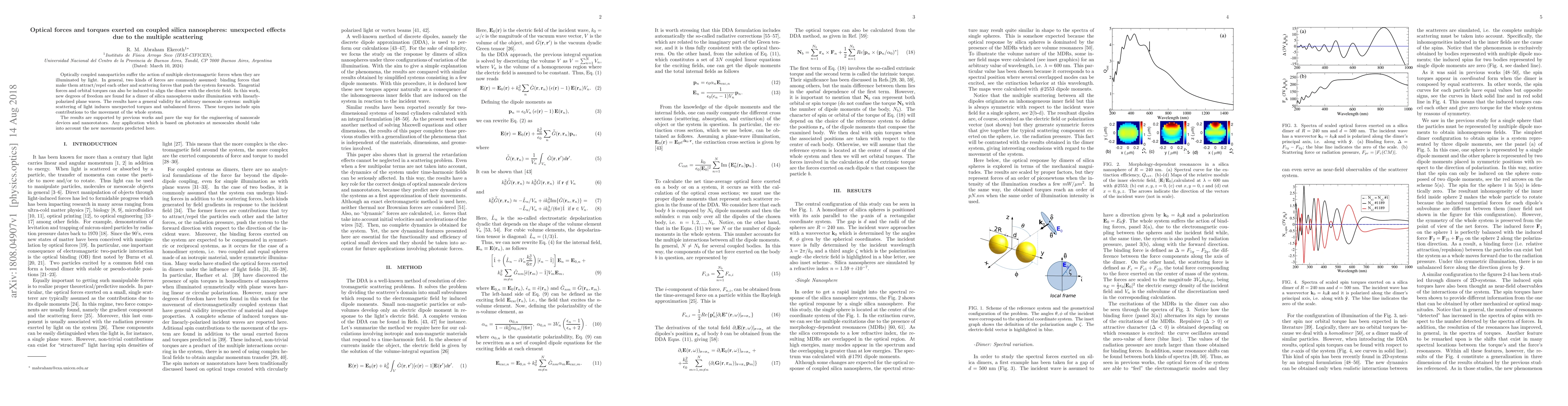 Optically coupled nanoparticles suffer the action of multiple electromagnetic forces when they are illuminated by light. In general, two kinds of forces are commonly assumed: binding forces that make them attract/repel each other and scattering forces that push the system forwards. Tangential forces and orbital torques can also be induced to align the dimer with the electric field. In this work, new degrees of freedom are found for a dimer of silica nanospheres under illumination with linearly-polarized plane waves. The results have a general validity for arbitrary mesoscale systems: multiple scattering of light induces unexpected torques and unbalanced forces. These torques include spin contributions to the movement of the whole system. The results are supported by previous works and pave the way for the engineering of nanoscale devices and nanorotators. Any application which is based on photonics at mesoscales should take into account the new movements predicted here.