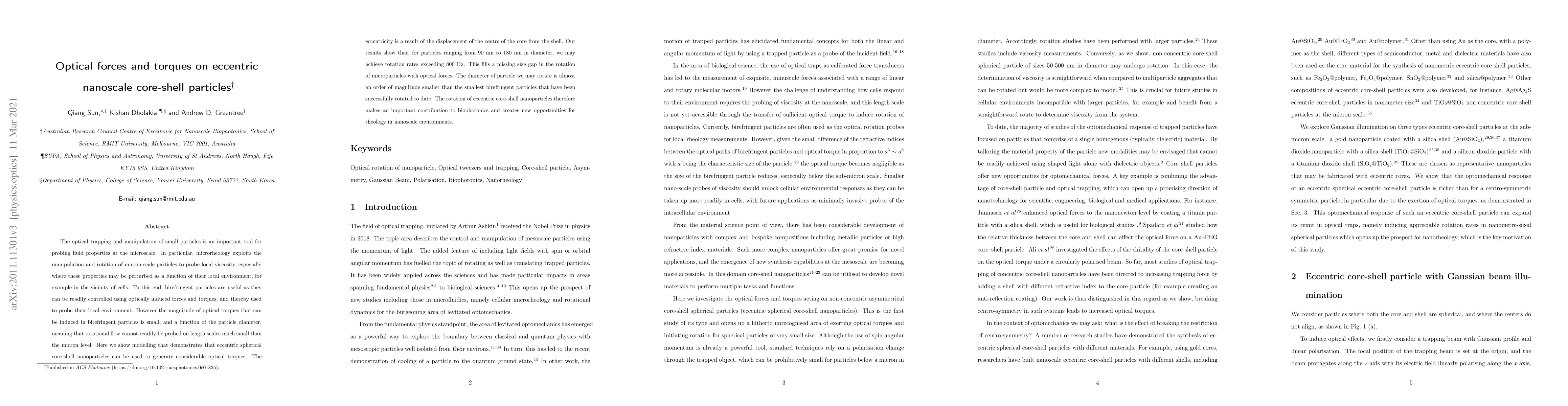 A new analytical framework for calculating the optical torque on eccentric core-shell particles was developed.