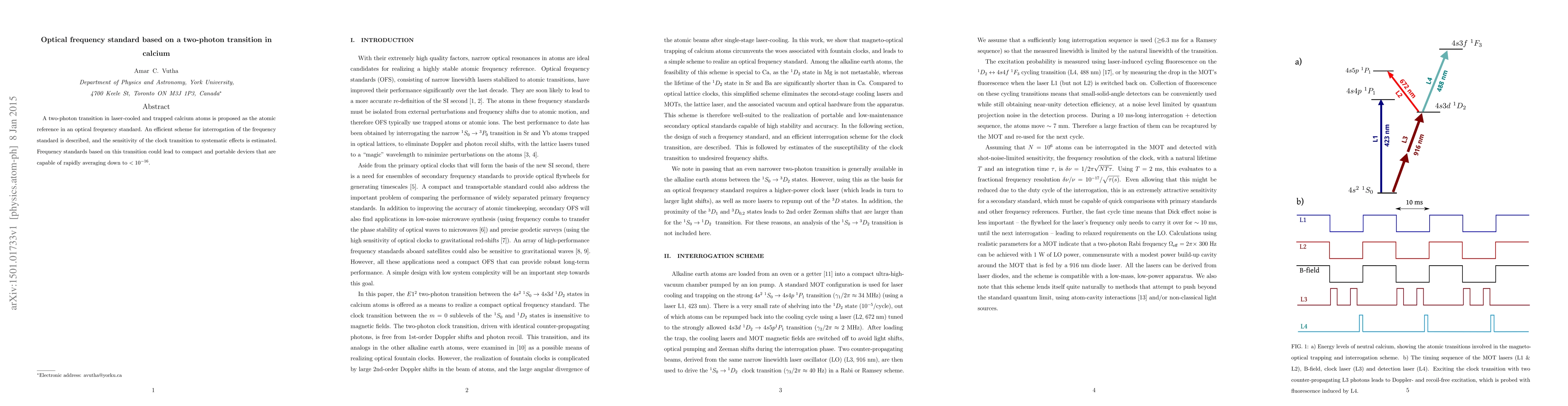 This paper proposes a new optical frequency standard based on a two-photon transition in laser-cooled calcium atoms, detailing an efficient interrogation scheme and estimating its sensitivity to systematic effects, aiming for compact, portable devices with high precision.
