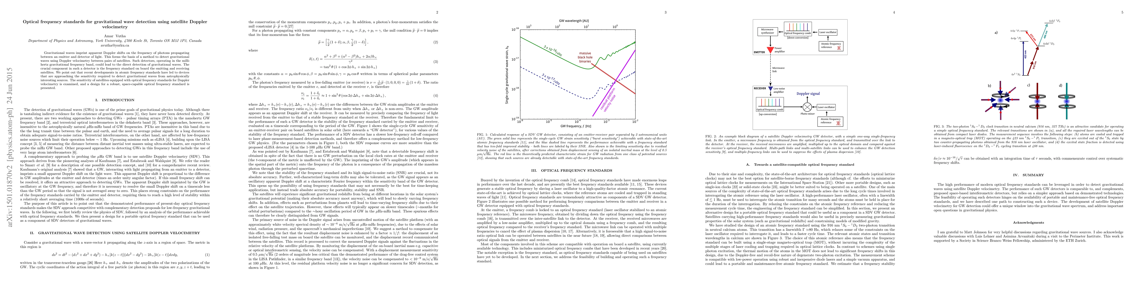 This paper explores the use of optical frequency standards for detecting gravitational waves via satellite Doppler velocimetry, highlighting recent advancements in atomic frequency standards that are nearing the sensitivity required for such detections. A design for a space-capable optical frequency standard is proposed to enhance the sensitivity of gravitational wave detectors in the milli-hertz frequency band.