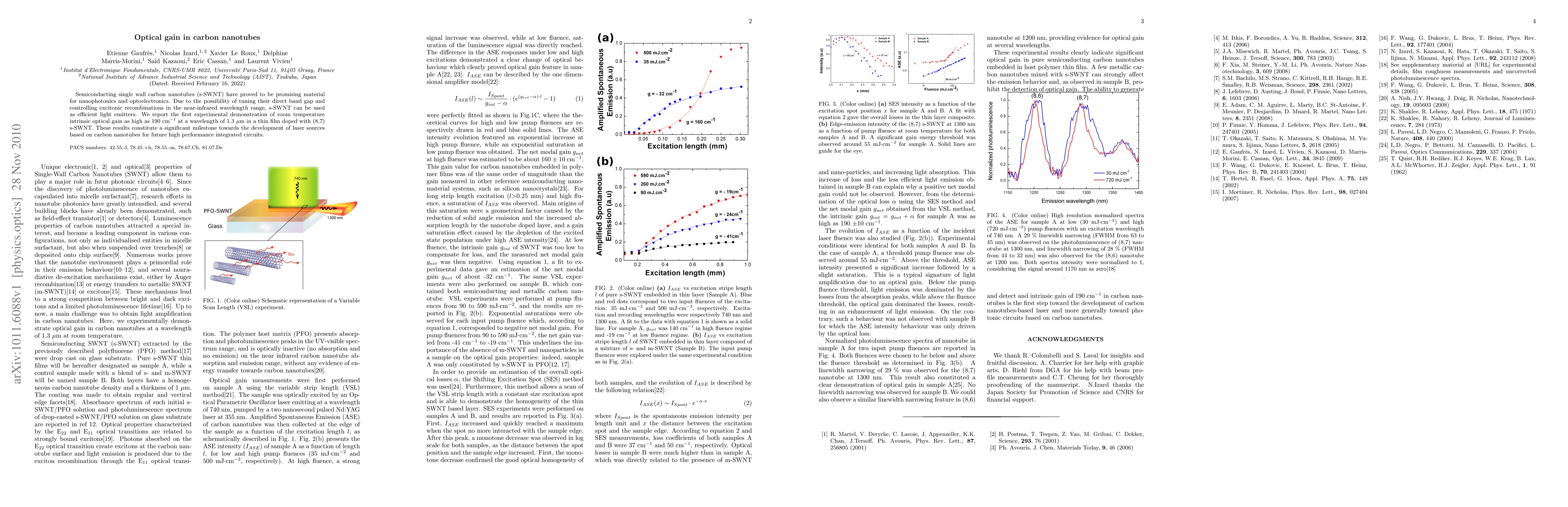 This paper demonstrates room temperature intrinsic optical gain of 190 cm-1 in semiconducting single-wall carbon nanotubes (s-SWNTs) at a wavelength of 1.3 μm, marking a significant step towards developing high-performance laser sources for future integrated circuits.
