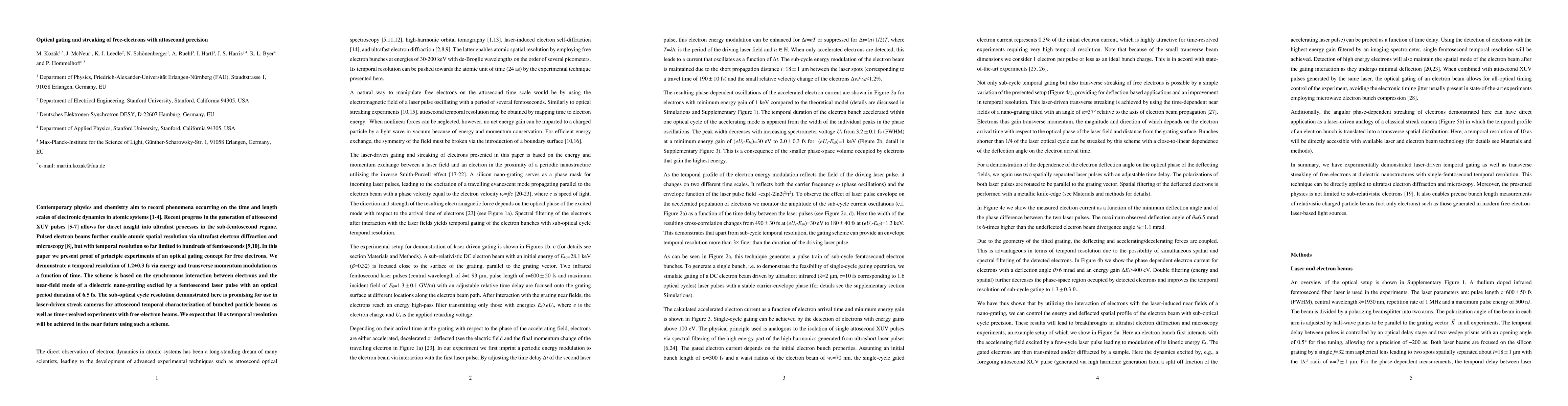 Researchers demonstrated a method to gate and streak free electrons with attosecond precision using a dielectric nano-grating excited by a femtosecond laser pulse.