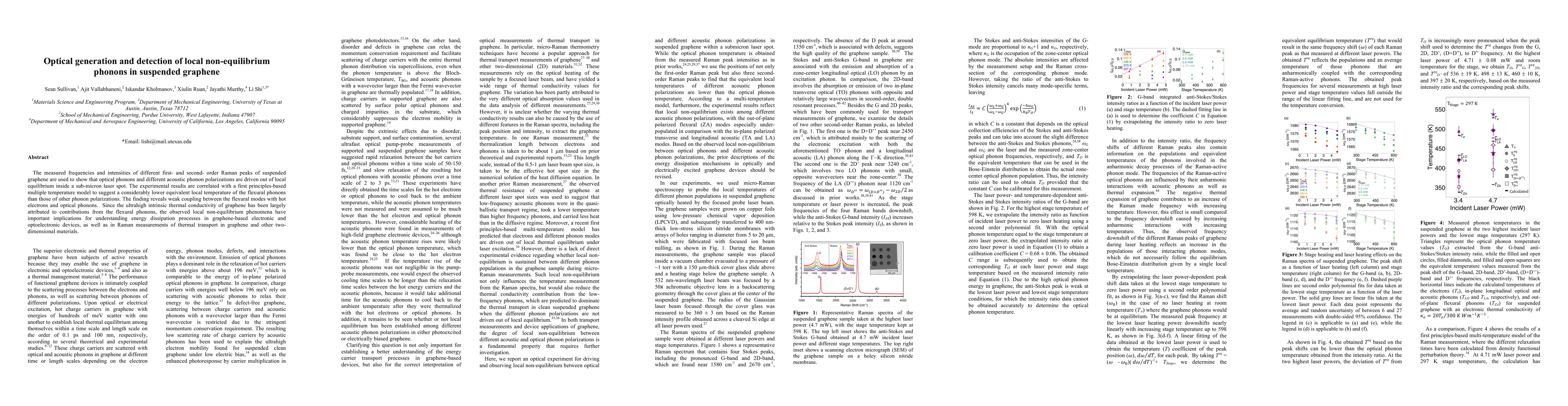 This study reveals that optical phonons and acoustic phonon polarizations in suspended graphene can be driven out of local equilibrium by laser excitation, indicating a lower equivalent temperature for flexural phonons due to weak coupling with hot electrons. These findings impact the understanding of energy dissipation in graphene-based devices and thermal transport measurements in two-dimensional materials.