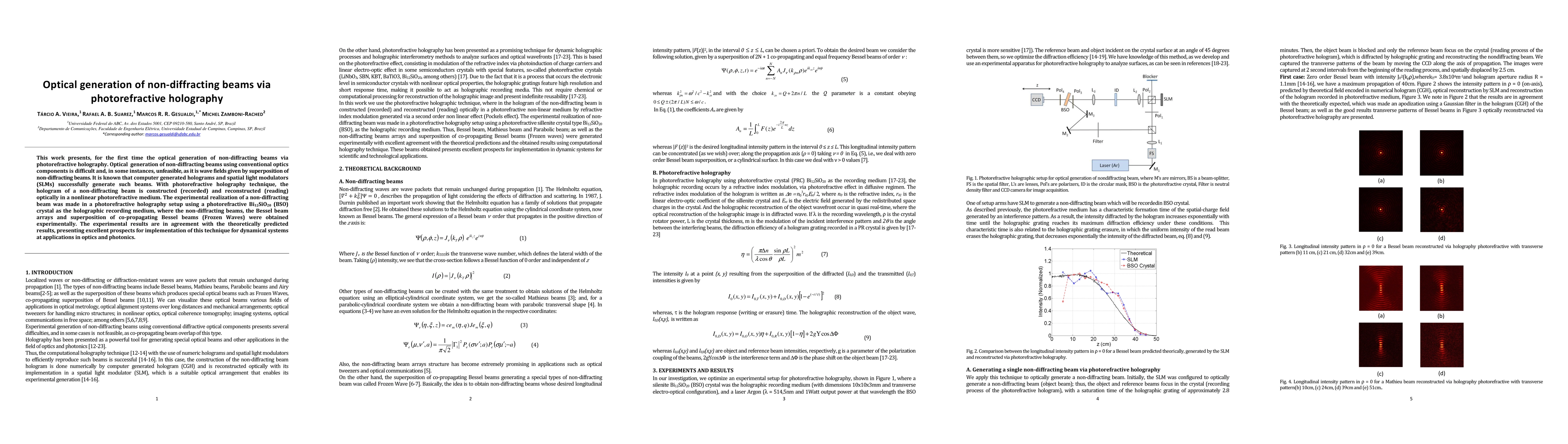 This paper demonstrates the first optical generation of non-diffracting beams using photorefractive holography, achieving results in a BSO crystal that match theoretical predictions, offering new potential for dynamic optical and photonic applications.