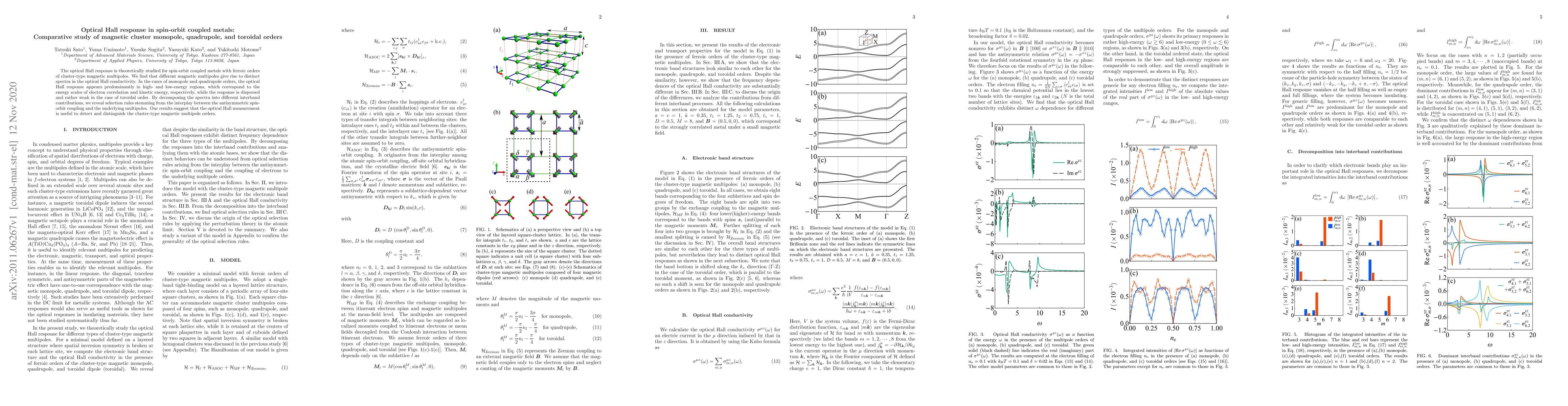 This study explores how different magnetic multipole orders in spin-orbit coupled metals influence optical Hall response spectra. It finds unique spectral signatures for monopole, quadrupole, and toroidal orders, linked to electron correlation and kinetic energy scales. The method involves decomposing spectra to reveal selection rules, suggesting optical Hall measurements can identify and differentiate these magnetic multipole orders.