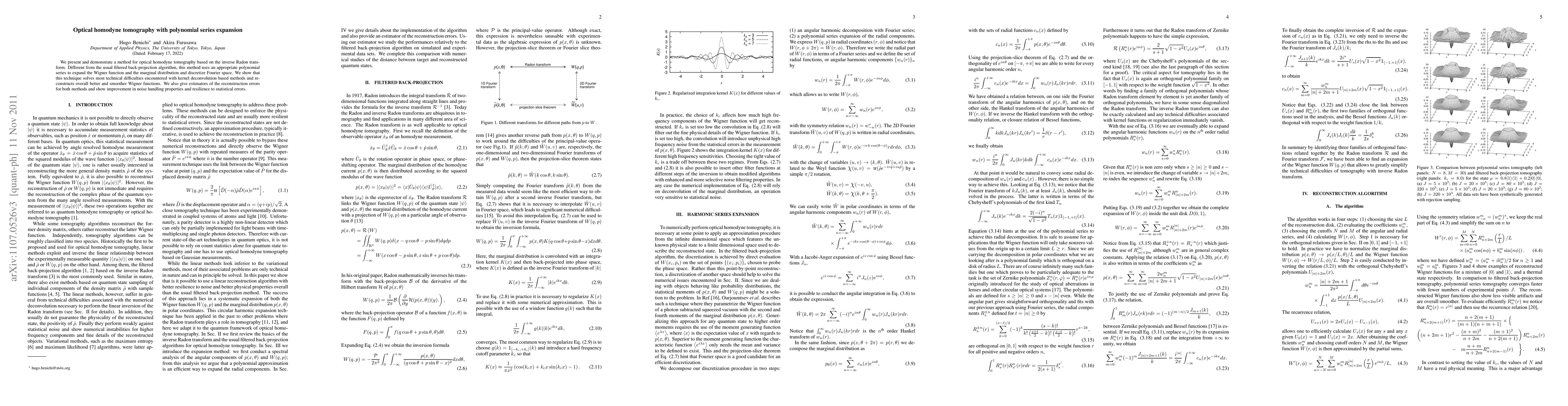 Researchers present a new method for optical homodyne tomography that uses polynomial series expansion to improve reconstruction accuracy and noise handling, outperforming traditional kernel deconvolution methods.
