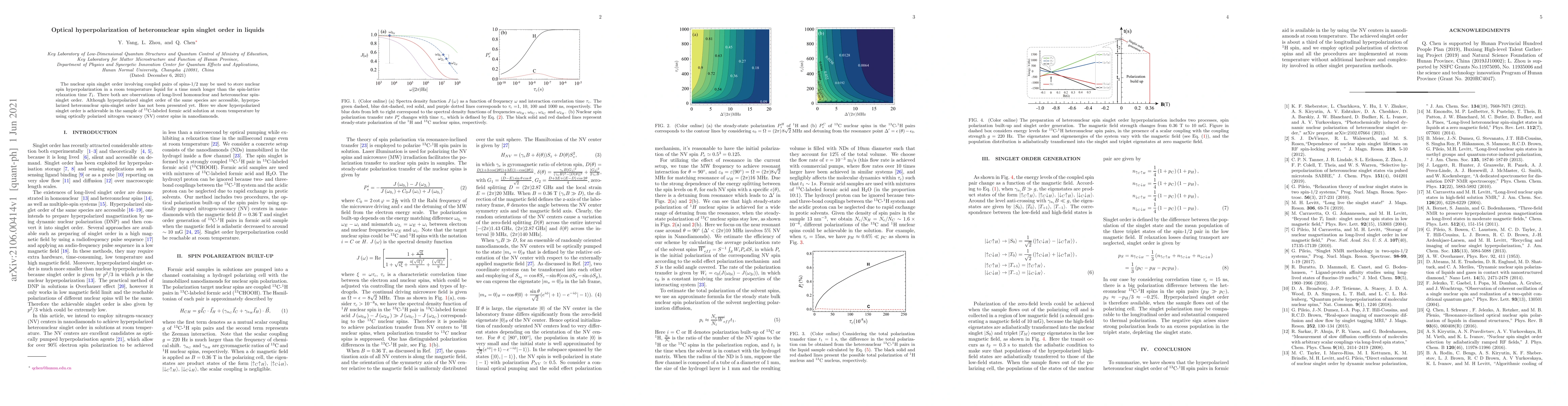 The nuclear spin singlet order involving coupled pairs of spins-1/2 may be used to store nuclear spin hyperpolarization in a room temperature liquid for a time much longer than the spin-lattice relaxation time $T_1$. There both are observations of long-lived homonuclear and heteronuclear spin-singlet order. Although hyperpolarized singlet order of the same species are accessible, hyperpolarized heteronuclear spin-singlet order has not been presented yet. Here we show hyperpolarized singlet order is achievable in the sample of $^{13}$C-labeled formic acid solution at room temperature by using optically polarized nitrogen vacancy (NV) center spins in nanodiamonds.