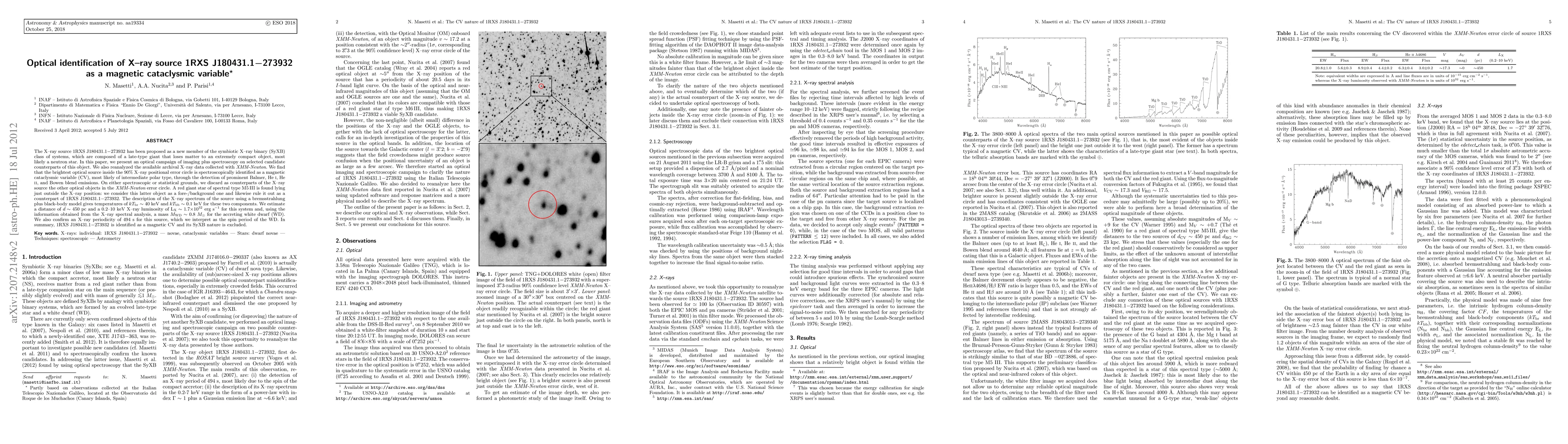 This paper identifies the X-ray source 1RXS J180431.1-273932 as a magnetic cataclysmic variable, specifically an intermediate polar, through optical imaging and spectroscopy, ruling out its classification as a symbiotic X-ray binary. The X-ray spectrum indicates a white dwarf with a spin period of 494 seconds.