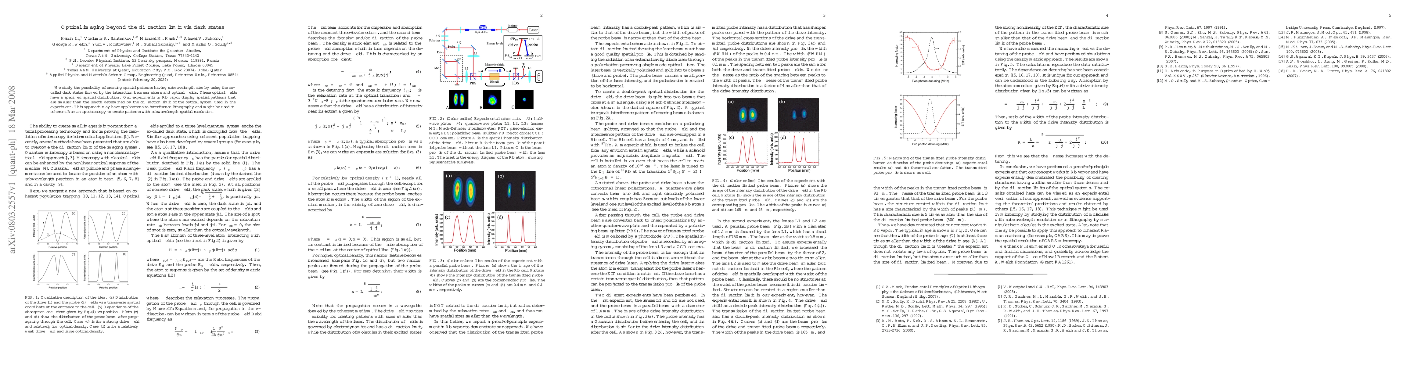 This paper explores the use of dark states in atomic interactions with optical fields to create subwavelength spatial patterns, demonstrating patterns smaller than the diffraction limit in Rb vapor. Potential applications include interference lithography and coherent Raman spectroscopy for enhanced spatial resolution.