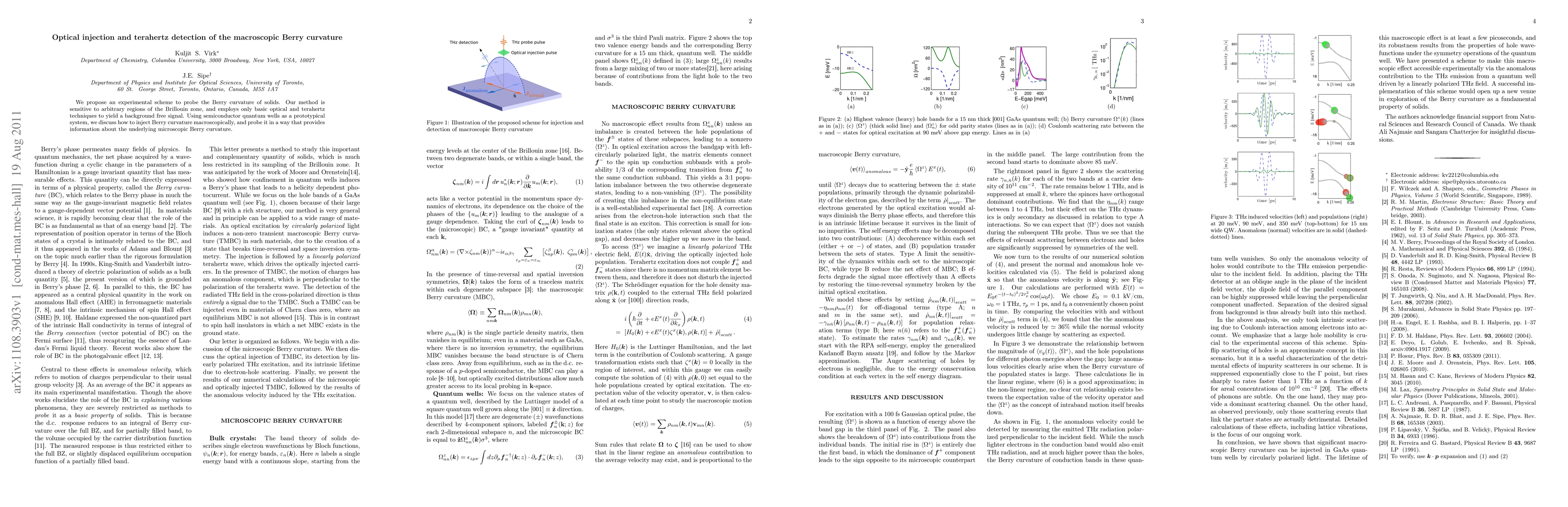 This research introduces an experimental scheme using optical injection and terahertz detection to measure the Berry curvature of solids, applicable across various Brillouin zone regions. The method, demonstrated with semiconductor quantum wells, provides a background-free signal to probe macroscopic Berry curvature, revealing insights into the underlying microscopic Berry curvature.