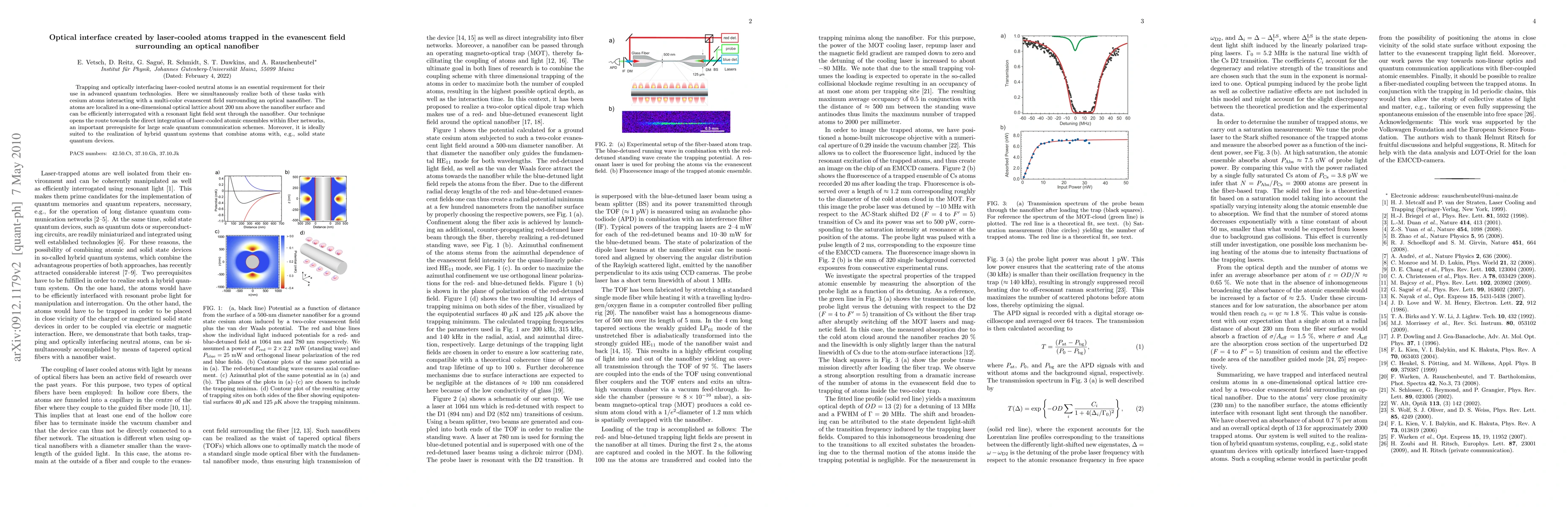 This paper presents a method for trapping and optically interfacing laser-cooled cesium atoms using an optical nanofiber's evanescent field, enabling efficient interrogation and paving the way for integrating atomic ensembles in fiber networks and hybrid quantum systems.