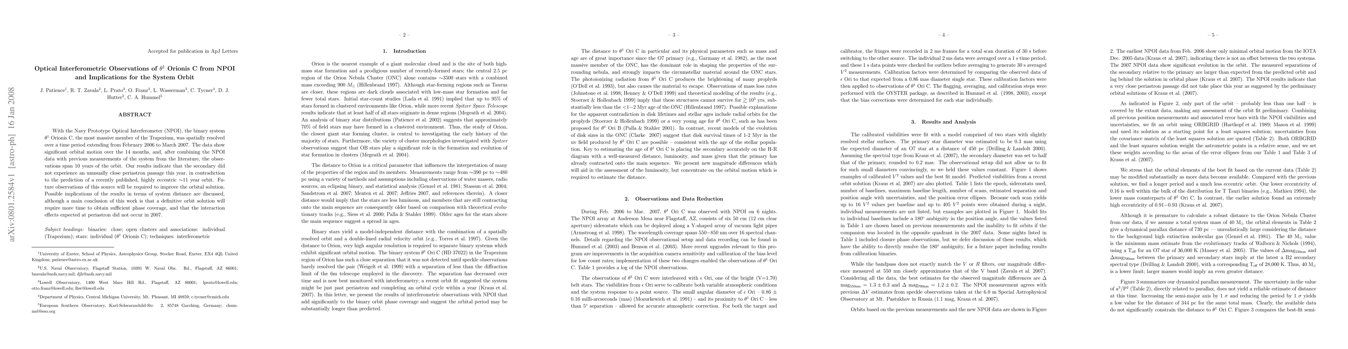 With the Navy Prototype Optical Interferometer (NPOI), the binary system Theta 1 Orionis C, the most massive member of the Trapezium, was spatially resolved over a time period extending from February 2006 to March 2007. The data show significant orbital motion over the 14 months, and, after combining the NPOI data with previous measurements of the system from the literature, the observations span 10 years of the orbit. Our results indicate that the secondary did not experience an unusually close periastron passage this year, in contradiction to the prediction of a recently published, highly eccentric ~11 year orbit. Future observations of this source will be required to improve the orbital solution. Possible implications of the results in terms of system distance are discussed, although a main conclusion of this work is that a definitive orbit solution will require more time to obtain sufficient phase coverage, and that the interaction effects expected at periastron did not occur in 2007.