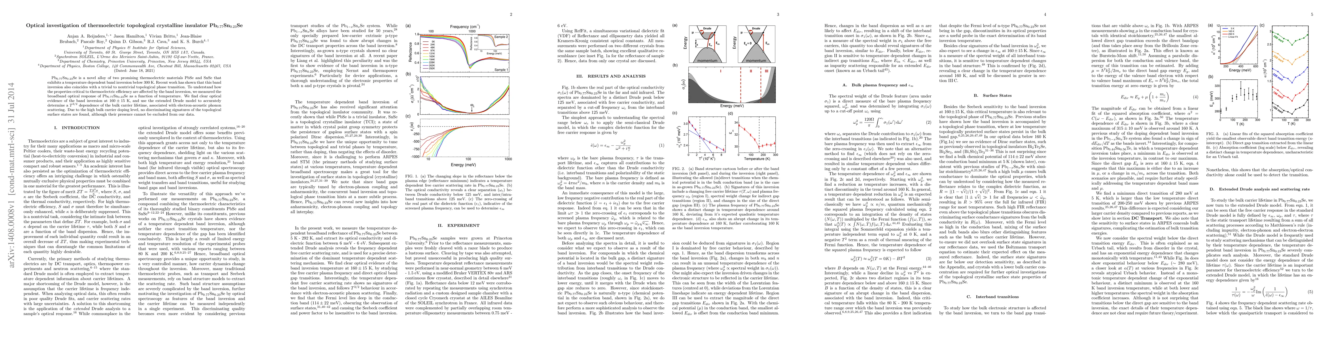 Researchers investigated Pb$_{0.77}$Sn$_{0.23}$Se, a thermoelectric material that exhibits temperature-dependent band inversion. They found evidence of the band inversion at 160 K and measured a $T^{3/2}$ dependence of bulk carrier lifetime.