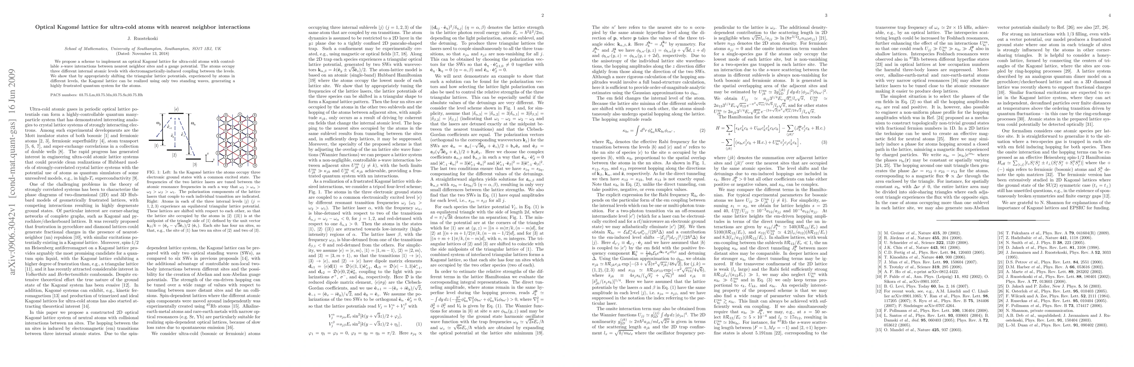 This paper proposes a method to create an optical Kagome lattice for ultra-cold atoms using two standing waves, enabling controllable nearest neighbor interactions and a gauge potential. The scheme utilizes electromagnetically-induced coupling between three atomic levels to generate a highly frustrated quantum system.