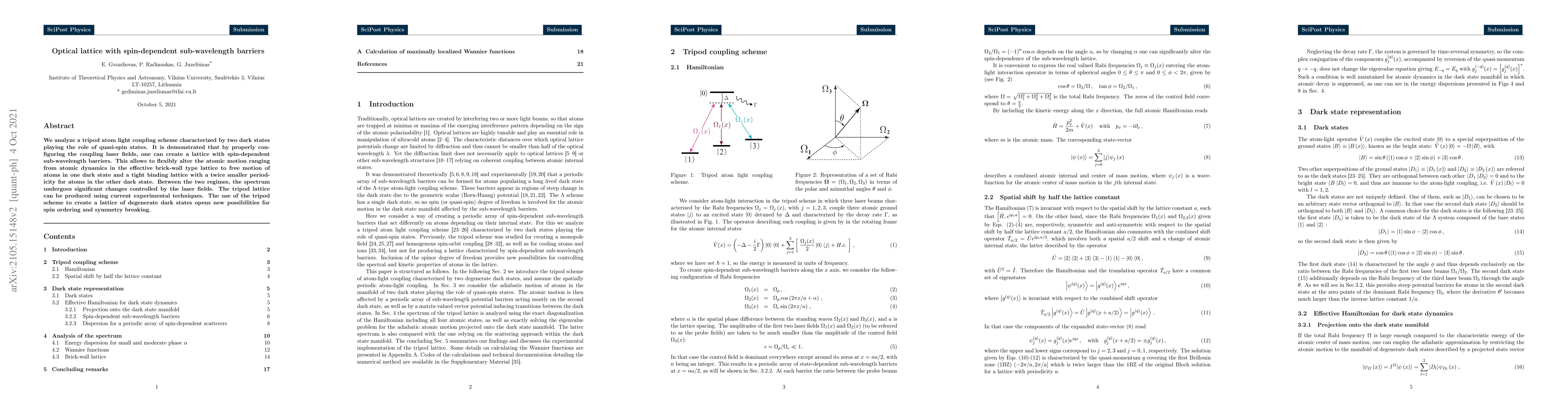 This research introduces a tripod atom light coupling scheme to create a lattice with spin-dependent sub-wavelength barriers, allowing flexible atomic motion control. It demonstrates the production of this lattice using current experimental techniques, opening new possibilities for spin ordering and symmetry breaking.