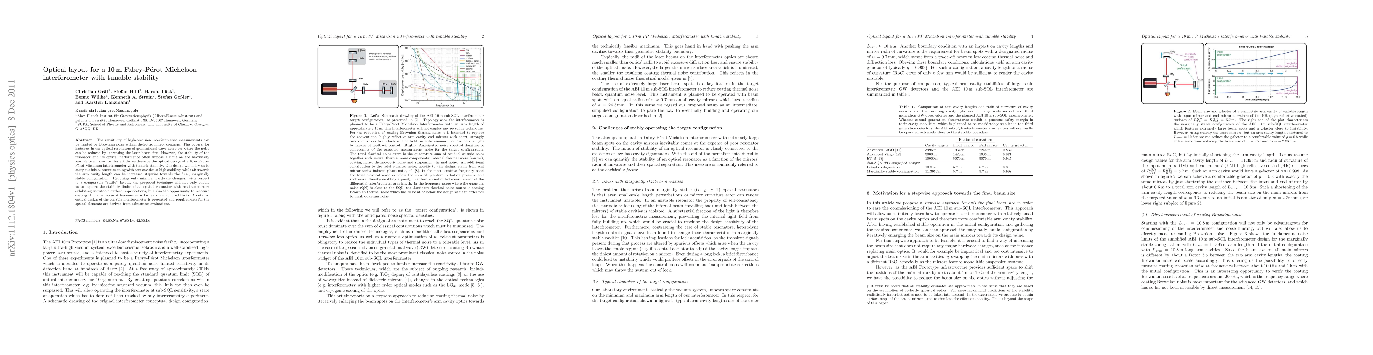 The sensitivity of high-precision interferometric measurements can be limited by Brownian noise within dielectric mirror coatings. This occurs, for instance, in the optical resonators of gravitational wave detectors where the noise can be reduced by increasing the laser beam size. However, the stability of the resonator and its optical performance often impose a limit on the maximally feasible beam size. In this article we describe the optical design of a 10\,m Fabry-P\'erot Michelson interferometer with tunable stability. Our design will allow us to carry out initial commissioning with arm cavities of high stability, while afterwards the arm cavity length can be increased stepwise towards the final, marginally stable configuration. Requiring only minimal hardware changes, with respect to a comparable "static" layout, the proposed technique will not only enable us to explore the stability limits of an optical resonator with realistic mirrors exhibiting inevitable surface imperfections, but also the opportunity to measure coating Brownian noise at frequencies as low as a few hundred Hertz. A detailed optical design of the tunable interferometer is presented and requirements for the optical elements are derived from robustness evaluations.