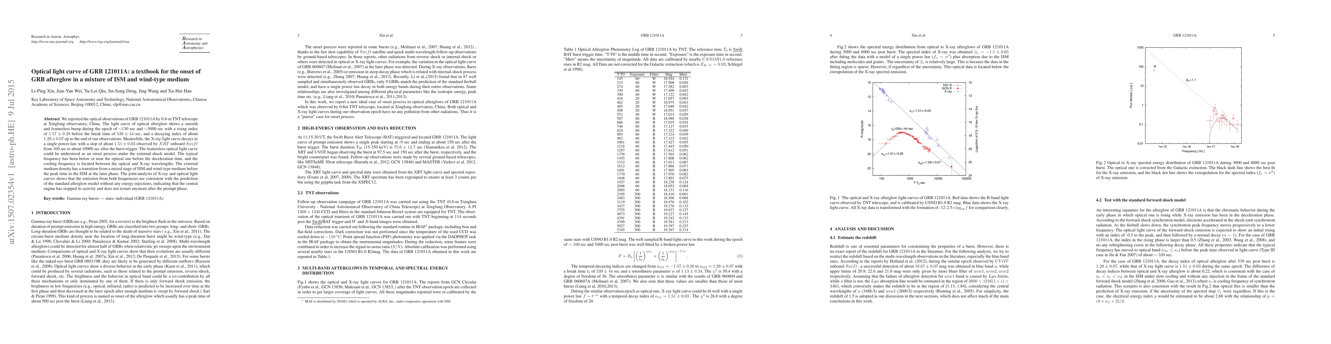 We reported the optical observations of GRB 121011A by 0.8-m TNT telescope at Xinglong observatory, China. The light curve of optical afterglow shows a smooth and featureless bump during the epoch of $\sim$130 sec and $\sim$5000 sec with a rising index of $1.57\pm0.28$ before the break time of $539\pm44$ sec, and a decaying index of about $1.29\pm0.07$ up to the end of our observations. Meanwhile, the X-ray light curve decays in a single power-law with a slop of about $1.51\pm0.03$ observed by $XRT$ onboard ${\rm} Swift$ from 100 sec to about 10000 sec after the burst trigger. The featureless optical light curve could be understood as an onset process under the external-shock model. The typical frequency has been below or near the optical one before the deceleration time, and the cooling frequency is located between the optical and X-ray wavelengths. The external medium density has a transition from a mixed stage of ISM and wind-type medium before the peak time to the ISM at the later phase. The joint-analysis of X-ray and optical light curves shows that the emission from both frequencies are consistent with the prediction of the standard afterglow model without any energy injections, indicating that the central engine has stopped its activity and does not restart anymore after the prompt phase.