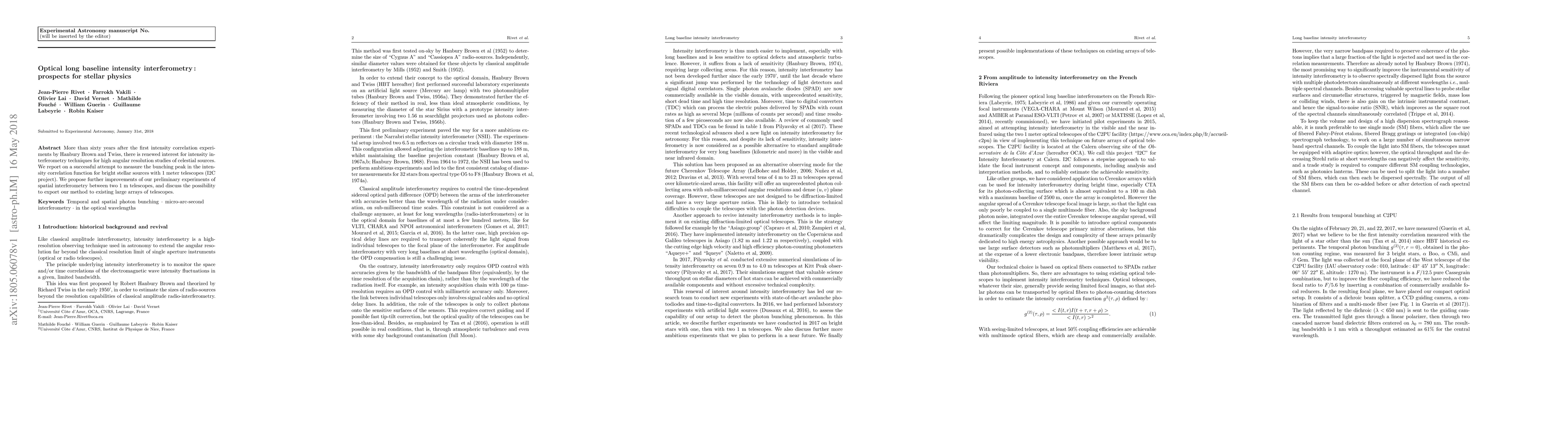This paper discusses the revival of optical long baseline intensity interferometry for high angular resolution studies, reporting successful measurements using 1-meter telescopes in the I2C project. The authors propose enhancements to their spatial interferometry method and explore its potential application to large telescope arrays for stellar physics.