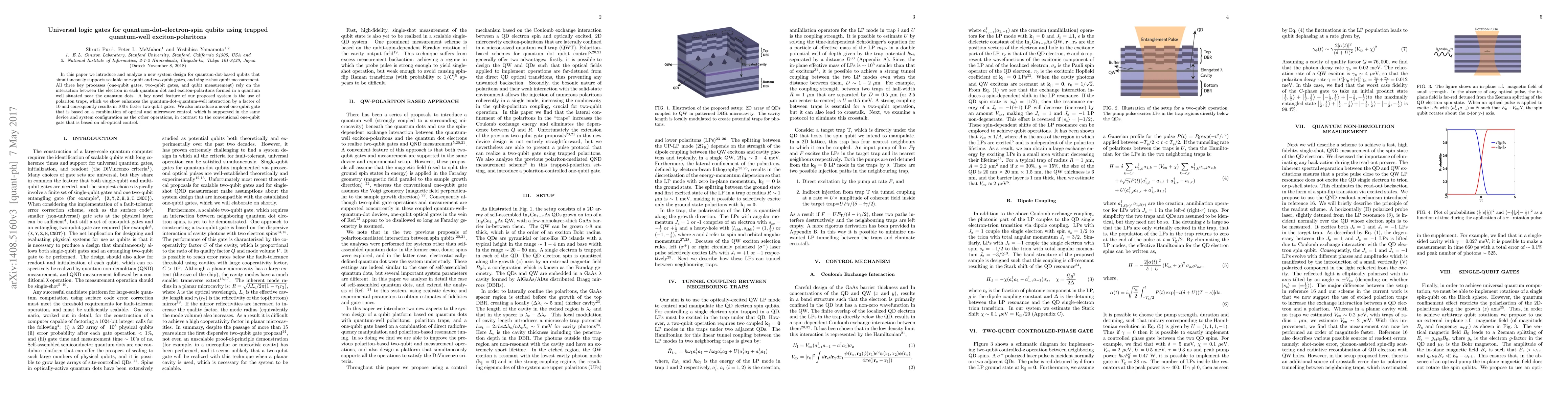 In this paper we introduce and analyze a new system design for quantum-dot-based qubits that simultaneously supports scalable one-qubit and two-qubit gates, and single-shot qubit measurement. All three key processes (one-qubit gates, two-qubit gates, and qubit measurement) rely on the interaction between the electron in each quantum dot and exciton-polaritons formed in a quantum well situated near the quantum dots. A key novel feature of our proposed system is the use of polariton traps, which we show enhances the quantum-dot--quantum-well interaction by a factor of 10 and consequently results in $100 \times$ faster two-qubit gates. We also introduce a novel one-qubit gate that is based on a combination of optical and microwave control, which is supported in the same device and system configuration as the other operations, in contrast to the conventional one-qubit gate that is based on all-optical control.