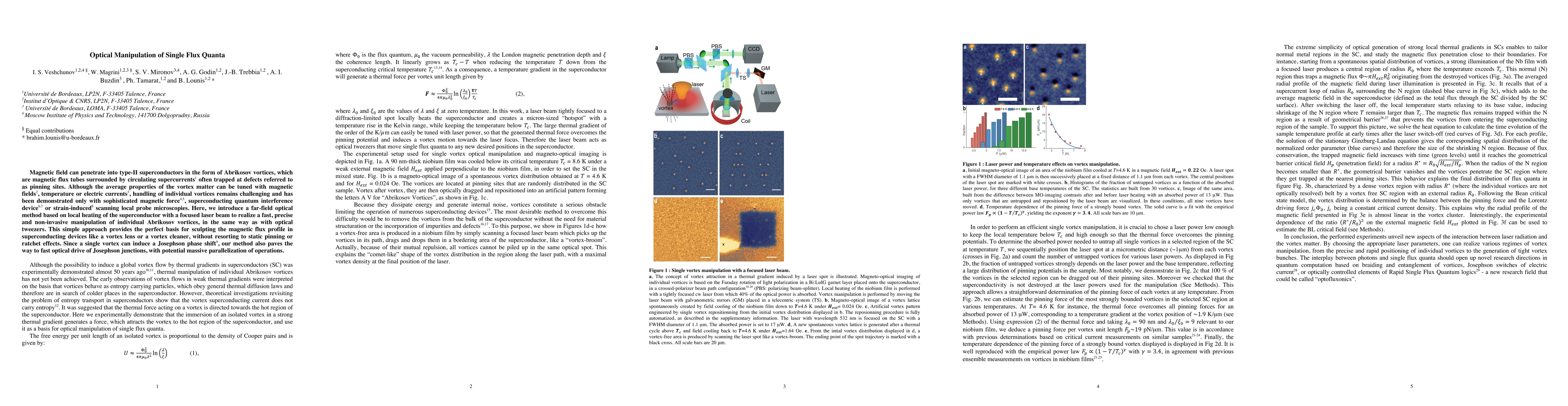This paper introduces a novel optical method for manipulating individual Abrikosov vortices in type-II superconductors using focused laser beams to induce local heating, enabling precise, non-invasive control akin to optical tweezers. This approach facilitates the sculpting of magnetic flux profiles in superconducting devices and offers potential for rapid optical drive of Josephson junctions.