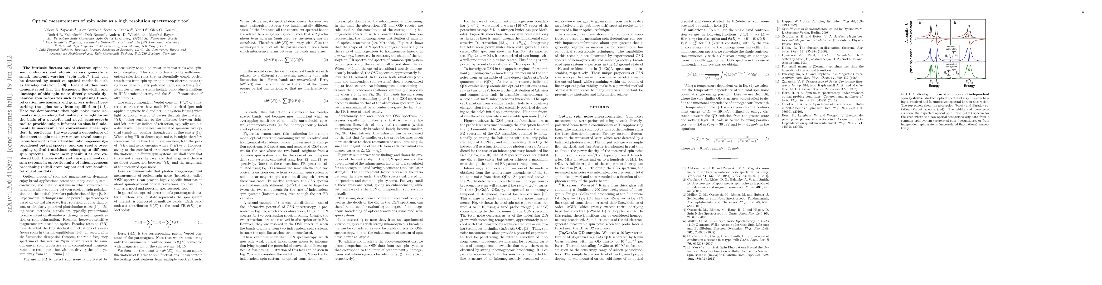 This paper demonstrates that optical measurements of spin noise via Faraday rotation can serve as a high-resolution spectroscopic tool, revealing dynamical spin properties without perturbing the system. The wavelength dependence of spin noise provides unique insights into homogeneous linewidths and resolves overlapping optical transitions, offering advantages over conventional linear optics.