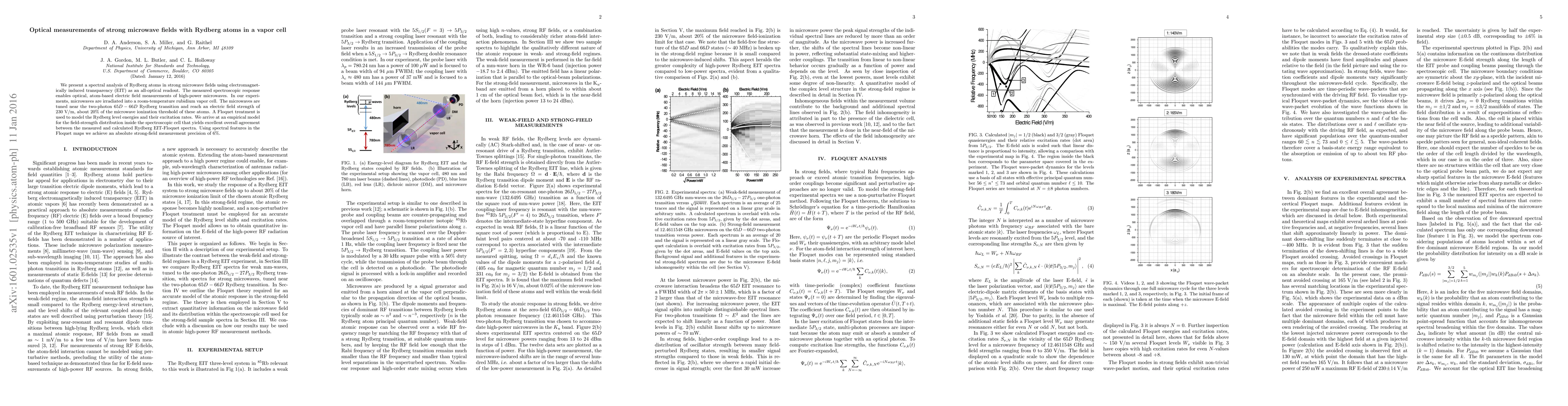 This paper reports on optical measurements of strong microwave fields using Rydberg atoms in a rubidium vapor cell, employing electromagnetically induced transparency (EIT) for readout. Experiments achieve an electric field strength of 230V/m, enabling precise optical measurements of high-power microwaves with a 6% absolute strong-field measurement precision.