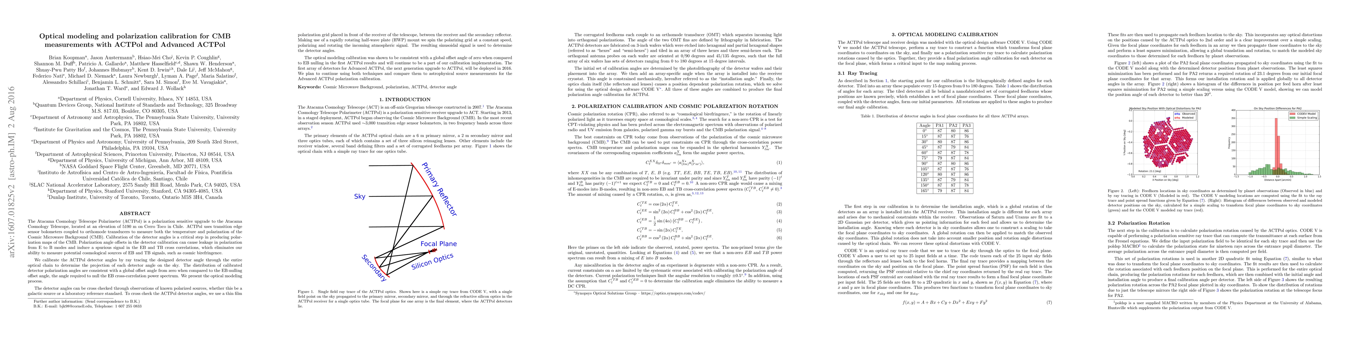 This paper details the optical modeling and calibration techniques used to accurately measure the Cosmic Microwave Background (CMB) polarization with the ACTPol and Advanced ACTPol instruments, emphasizing the importance of precise detector angle calibration to avoid polarization leakage and spurious signals.