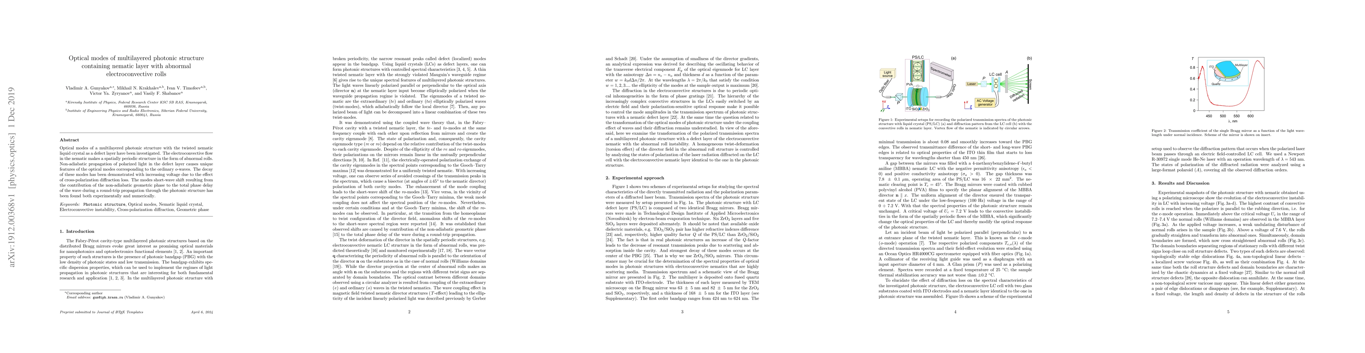 Optical modes of a multilayered photonic structure with the twisted nematic liquid crystal as a defect layer have been investigated. The electroconvective flow in the nematic makes a spatially periodic structure in the form of abnormal rolls. Non-adiabatic propagation of polarized light in the defect layer causes unique features of the optical modes corresponding to the ordinary $o$-waves. The decay of these modes has been demonstrated with increasing voltage due to the effect of cross-polarization diffraction loss. The modes short-wave shift resulting from the contribution of the non-adiabatic geometric phase to the total phase delay of the wave during a round-trip propagation through the photonic structure has been found both experimentally and numerically