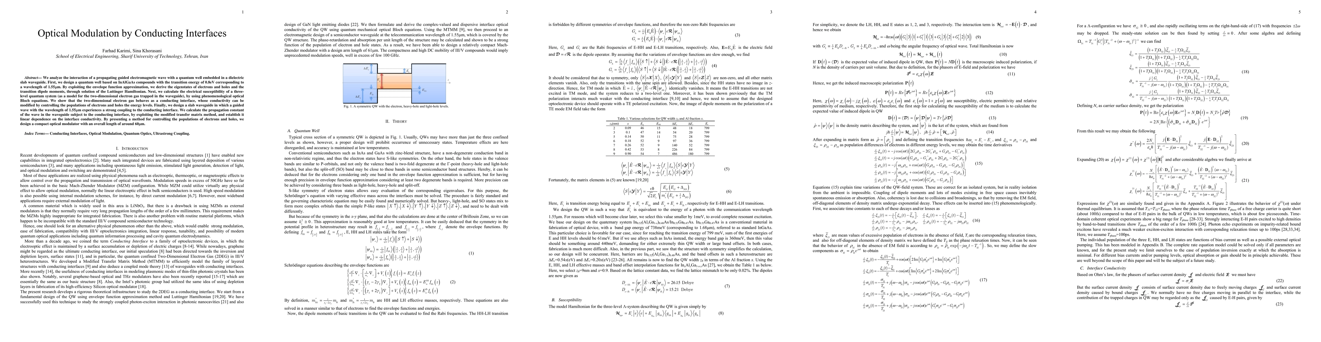 We analyze the interaction of a propagating guided electromagnetic wave with a quantum well embedded in a dielectric slab waveguide. First, we design a quantum well based on InAlGaAs compounds with the transition energy of 0.8eV corresponding to a wavelength of 1.55um. By exploiting the envelope function approximation, we derive the eigenstates of electrons and holes and the transition dipole moments, through solution of the Luttinger Hamiltonian. Next, we calculate the electrical susceptibility of a three-level quantum system (as a model for the two-dimensional electron gas trapped in the waveguide), by using phenomenological optical Bloch equations. We show that the two-dimensional electron gas behaves as a conducting interface, whose conductivity can be modified by controlling the populations of electrons and holes the energy levels. Finally, we design a slab waveguide in which a guided wave with the wavelength of 1.55um experiences a strong coupling to the conducting interface. We calculate the propagation constant of the wave in the waveguide subject to the conducting interface, by exploiting the modified transfer matrix method, and establish it linear dependence on the interface conductivity. By presenting a method for controlling the populations of electrons and holes, we design a compact optical modulator with an overall length of around 60um.