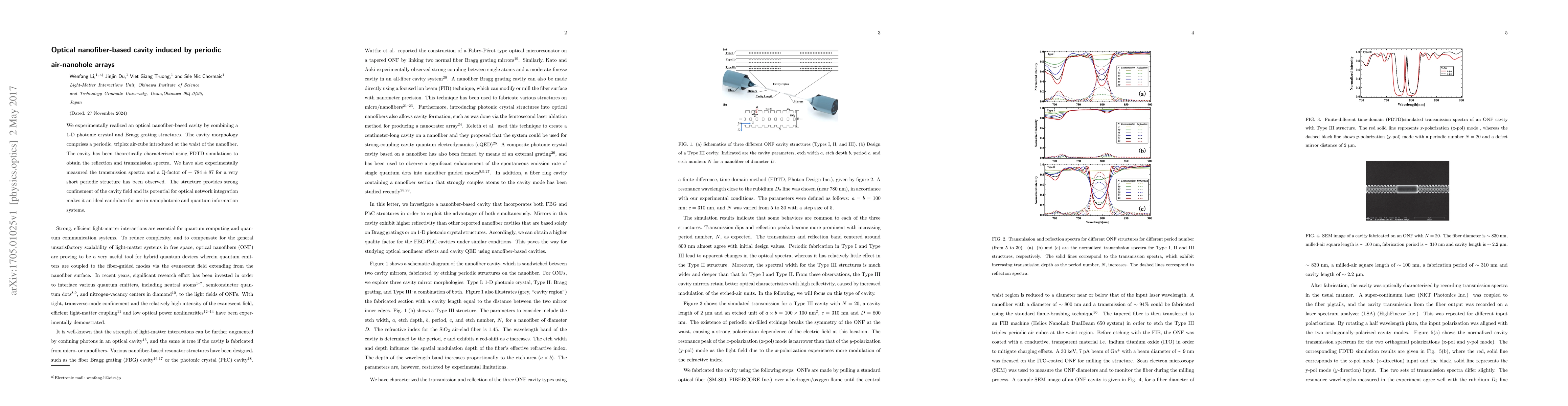 This paper presents an optical nanofiber-based cavity created using a 1-D photonic crystal and Bragg grating structures, featuring a periodic triplex air-cube at the nanofiber waist. Experimental and simulation results show a high Q-factor of ~784(87), indicating strong field confinement and potential for use in nanophotonic and quantum information systems.