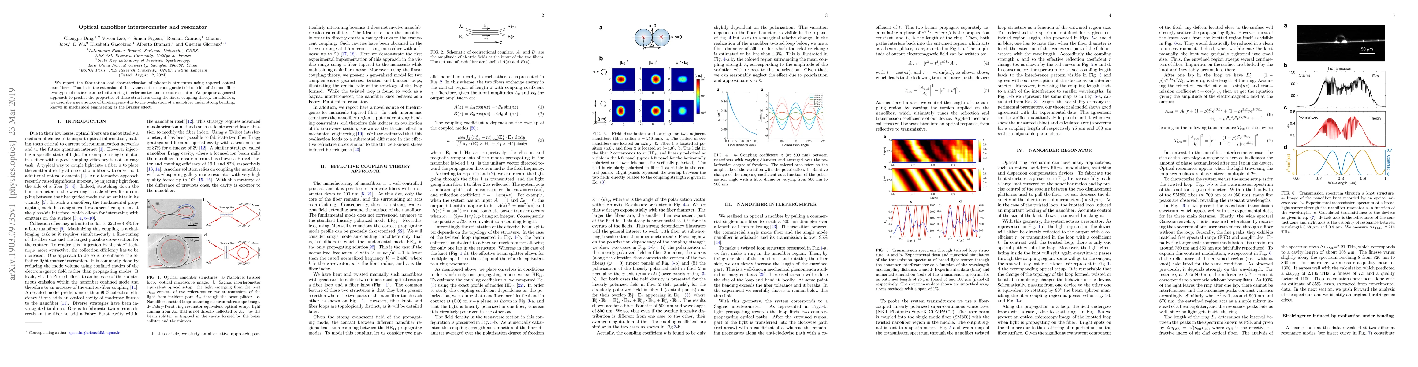 We report the fabrication and characterization of photonic structures using tapered optical nanofibers. Thanks to the extension of the evanescent electromagnetic field outside of the nanofiber two types of devices can be built: a ring interferometer and a knot resonator. We propose a general approach to predict the properties of these structures using the linear coupling theory. In addition, we describe a new source of birefringence due to the ovalization of a nanofiber under strong bending, known in mechanical engineering as the Brazier effect.