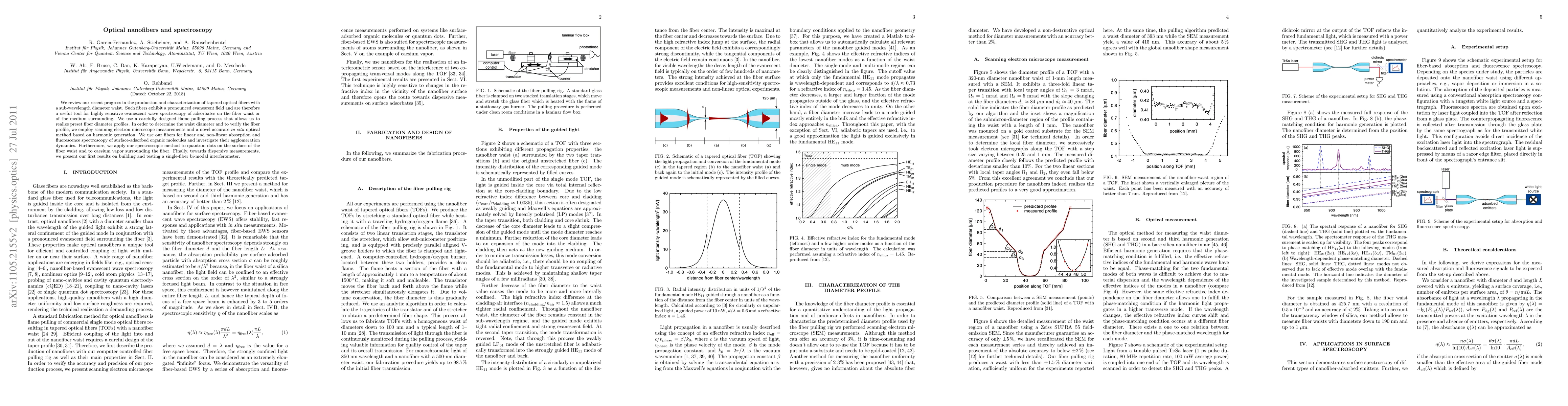 We review our recent progress in the production and characterization of tapered optical fibers with a sub-wavelength diameter waist. Such fibers exhibit a pronounced evanescent field and are therefore a useful tool for highly sensitive evanescent wave spectroscopy of adsorbates on the fiber waist or of the medium surrounding. We use a carefully designed flame pulling process that allows us to realize preset fiber diameter profiles. In order to determine the waist diameter and to verify the fiber profile, we employ scanning electron microscope measurements and a novel accurate in situ optical method based on harmonic generation. We use our fibers for linear and non-linear absorption and fluorescence spectroscopy of surface-adsorbed organic molecules and investigate their agglomeration dynamics. Furthermore, we apply our spectroscopic method to quantum dots on the surface of the fiber waist and to caesium vapor surrounding the fiber. Finally, towards dispersive measurements, we present our first results on building and testing a single-fiber bi-modal interferometer.