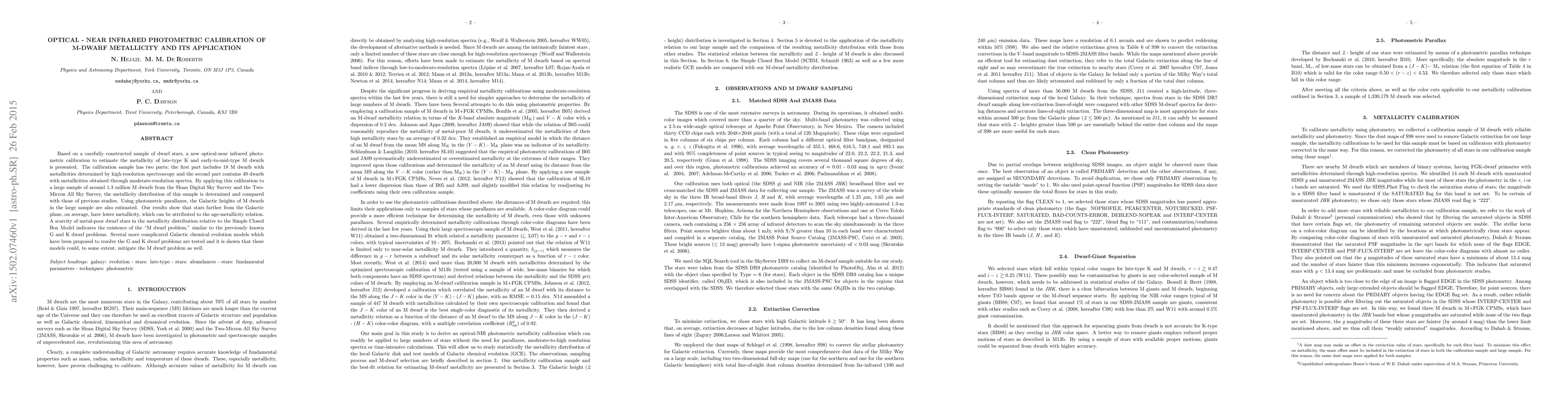 This paper presents a new optical-near infrared photometric calibration for estimating the metallicity of M-dwarf stars, applied to a large sample from the Sloan Digital Sky Survey and Two-Micron All Sky Survey. The results reveal a lower metallicity for stars farther from the Galactic plane and highlight the "M dwarf problem," suggesting that existing Galactic chemical evolution models may partially address this issue.