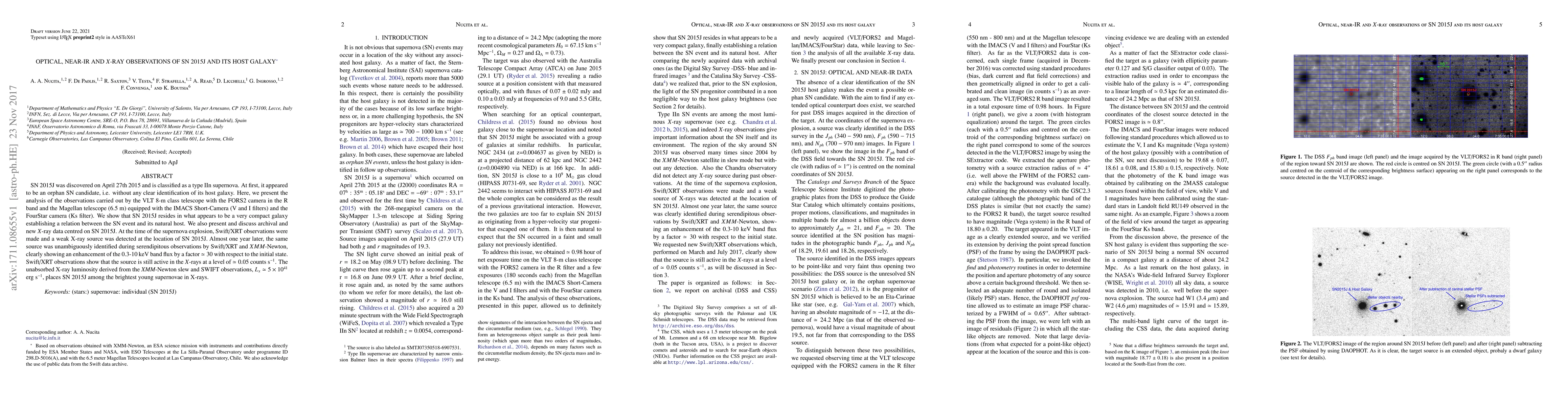 This paper analyzes optical, near-IR, and X-ray observations of the type IIn supernova SN 2015J, revealing it resides in a compact galaxy. The X-ray source detected by Swift/XRT and confirmed by XMM-Newton shows a significant flux enhancement, classifying SN 2015J among the brightest young supernovae in X-rays.