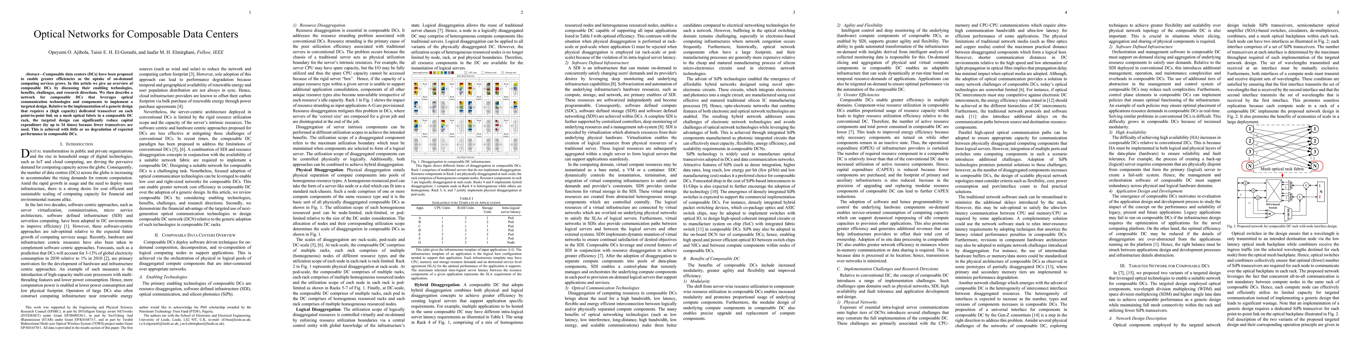 This paper reviews composable data centers, highlighting their benefits and challenges, and proposes an optical network design that leverages targeted optical communication to reduce capital expenditure by up to 34 times compared to generic designs, with minimal performance degradation.