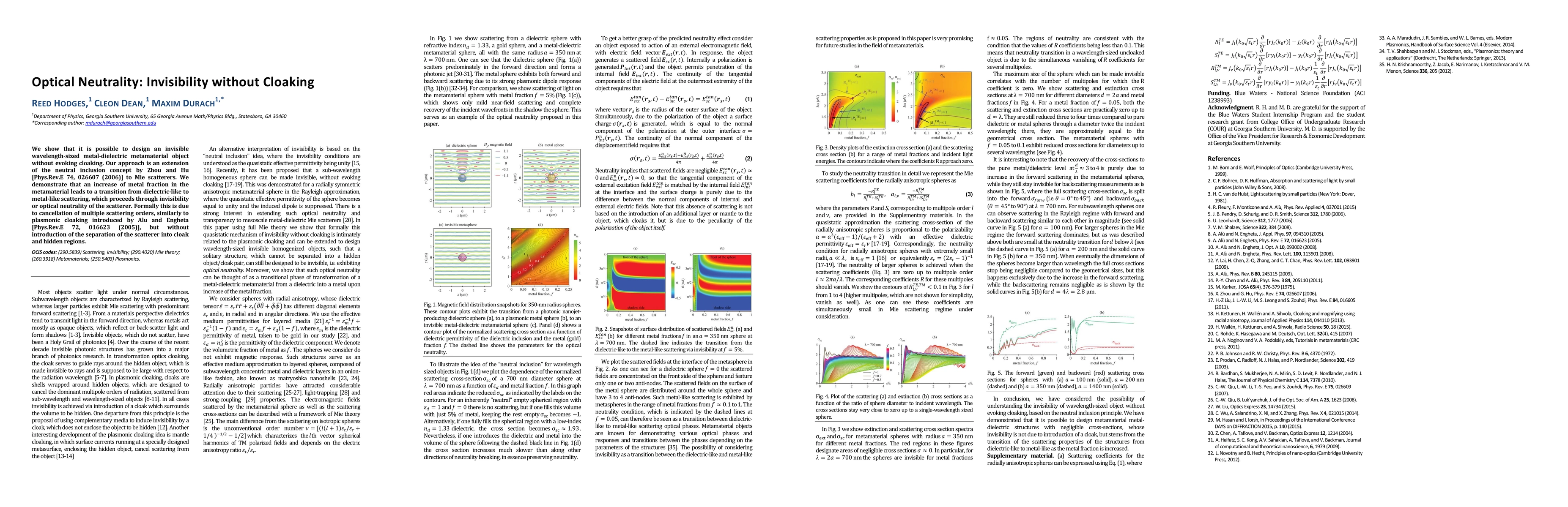 This paper demonstrates the creation of a wavelength-sized metal-dielectric metamaterial that achieves invisibility without traditional cloaking, transitioning from dielectric-like to metal-like scattering through optical neutrality. This is accomplished by increasing the metal fraction and canceling multiple scattering orders.