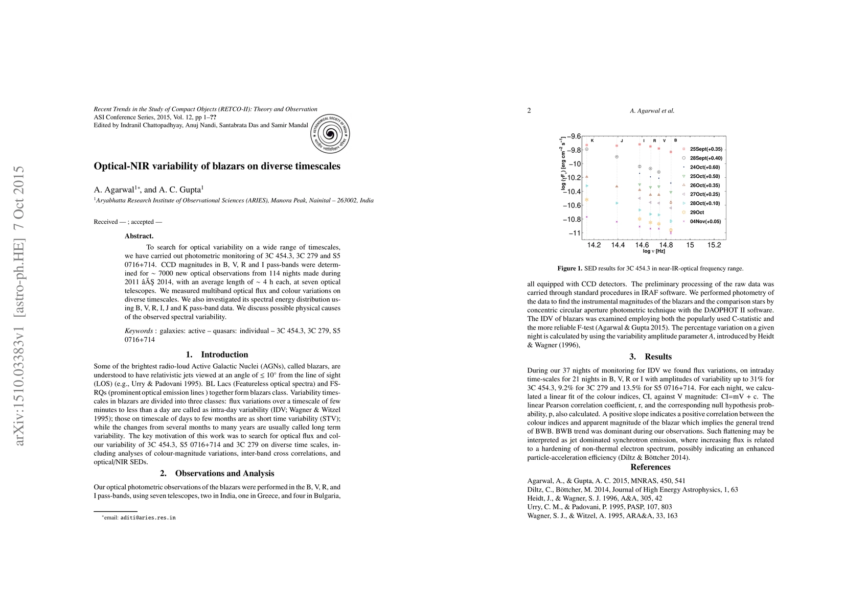 Researchers monitored 3 blazars for optical variability over diverse timescales using photometric observations at seven telescopes. They found multiband optical flux and color variations on various timescales, with implications for understanding the physical causes of spectral energy distribution changes.