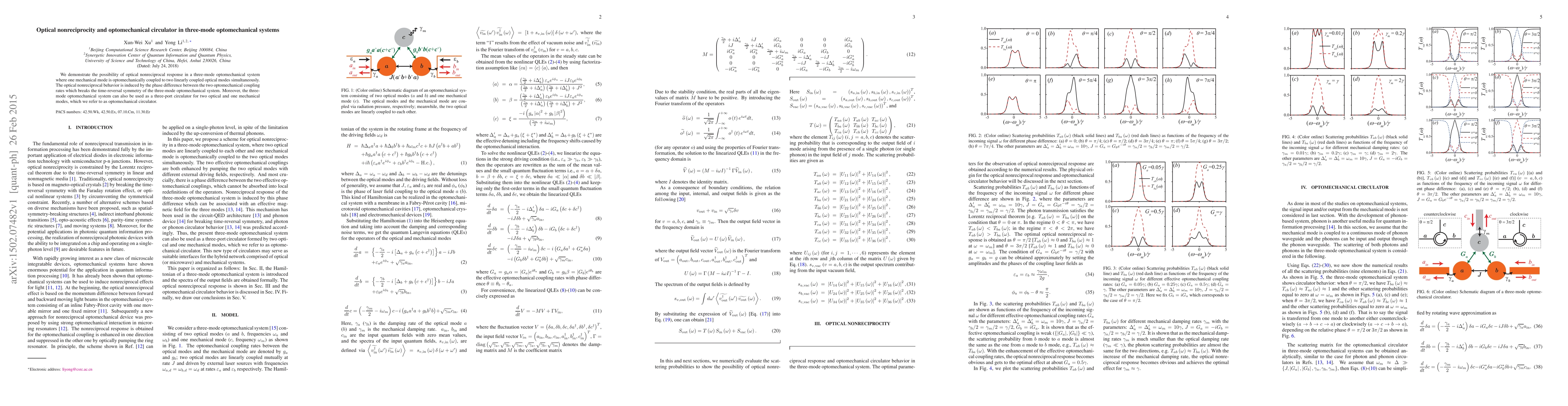 This paper demonstrates optical nonreciprocity in a three-mode optomechanical system, where a single mechanical mode couples to two optical modes, inducing nonreciprocal behavior due to differing coupling rates. The system also functions as an optomechanical circulator, directing signals between two optical and one mechanical mode.