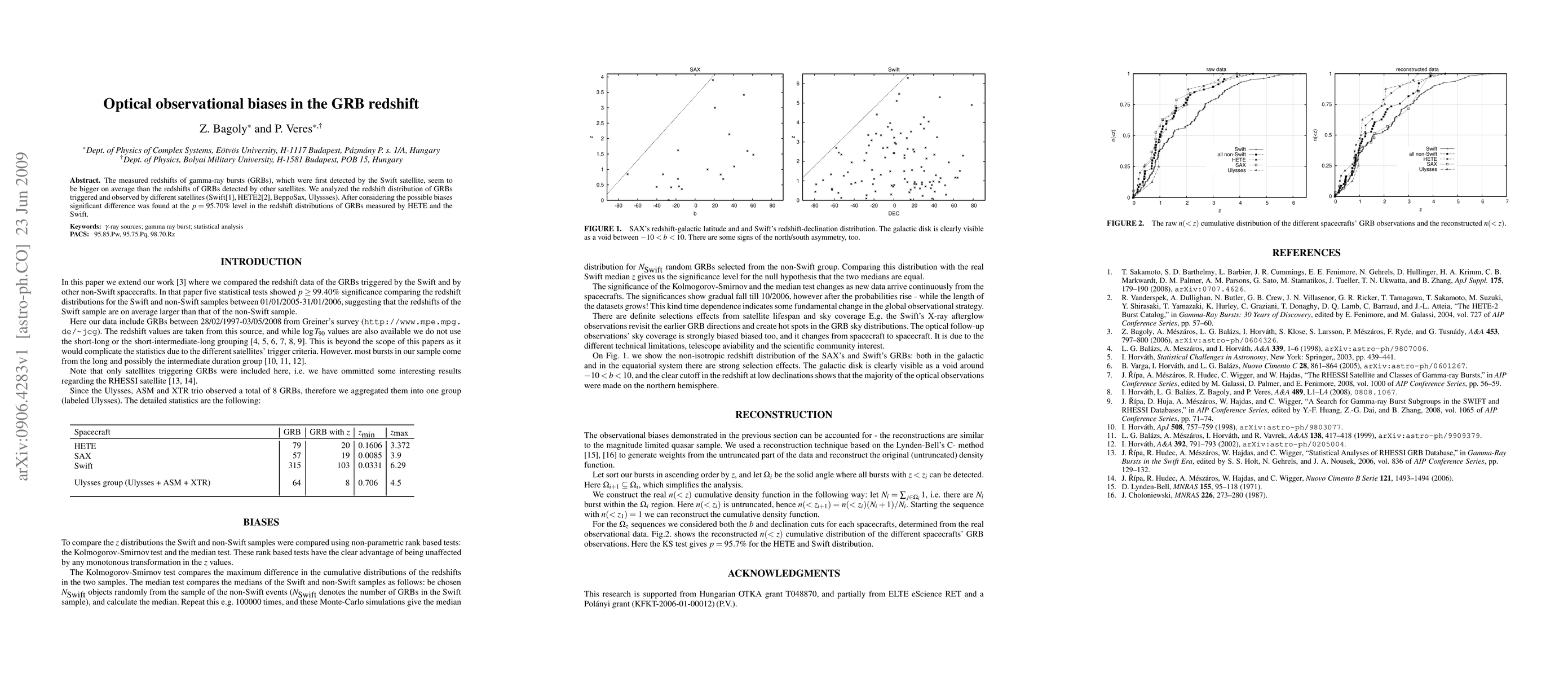The measured redshifts of gamma-ray bursts (GRBs), which were first detected by the Swift satellite, seem to be bigger on average than the redshifts of GRBs detected by other satellites. We analyzed the redshift distribution of GRBs triggered and observed by different satellites (Swift, HETE2, BeppoSax, Ulyssses). After considering the possible biases {significant difference was found at the p=95.70% level in the redshift distributions of GRBs measured by HETE and the Swift.