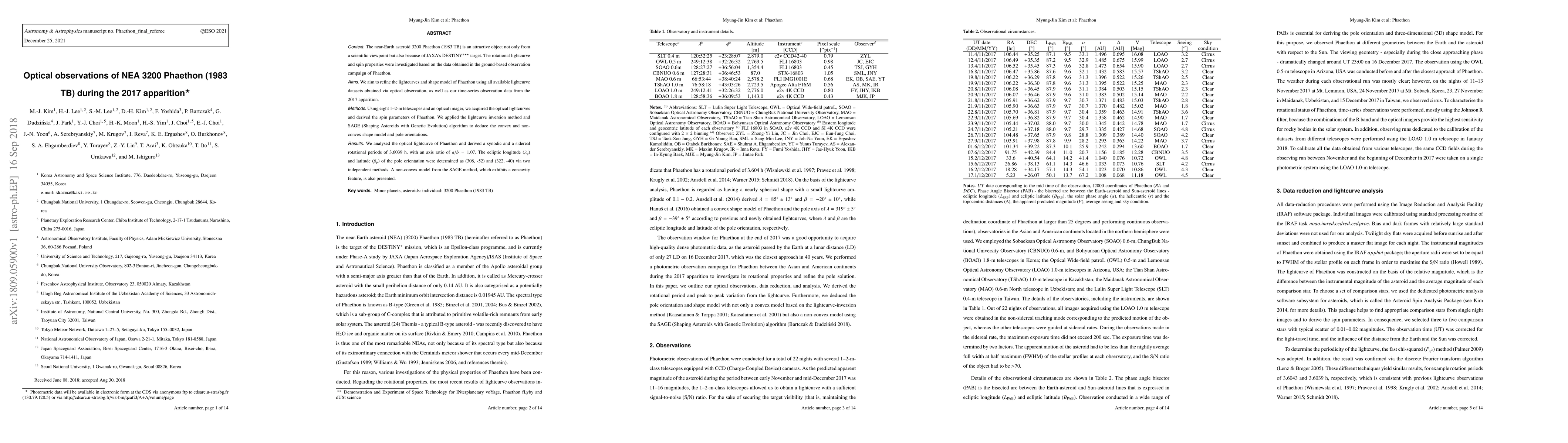 Astronomers studied the near-Earth asteroid Phaethon using optical observations from 2017, refining its lightcurve and shape model to better understand its rotation and spin properties.