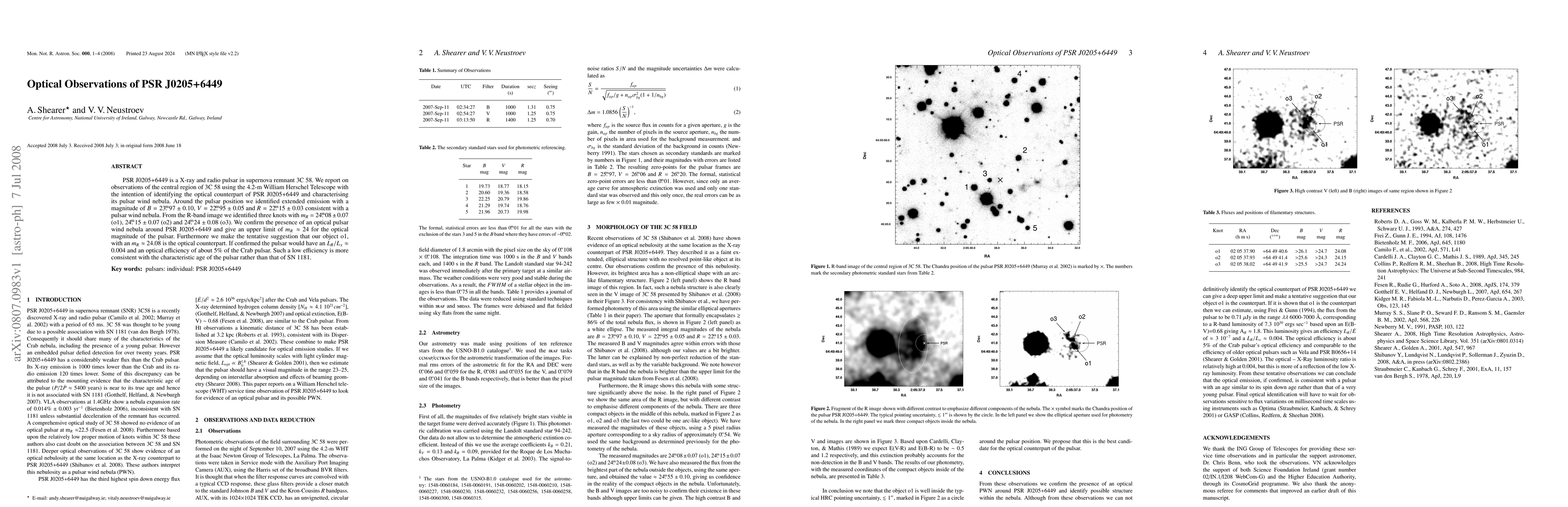 PSR J0205+6449 is a X-ray and radio pulsar in supernova remnant 3C 58. We report on observations of the central region of 3C 58 using the 4.2-m William Herschel Telescope with the intention of identifying the optical counterpart of PSR J0205+6449 and characterising its pulsar wind nebula. Around the pulsar position we identified extended emission with a magnitude of $B = 23 \fm 97 \pm 0.10$, $V = 22 \fm 95 \pm 0.05$ and $R = 22 \fm 15 \pm 0.03$ consistent with a pulsar wind nebula. From the R-band image we identified three knots with $m_R$ = $24 \fm 08 \pm 0.07$ (o1), $24 \fm 15 \pm 0.07$ (o2) and $24 \fm 24 \pm 0.08$ (o3). We confirm the presence of an optical pulsar wind nebula around PSR J0205+6449 and give an upper limit of $m_R \approx$ 24 for the optical magnitude of the pulsar. Furthermore we make the tentative suggestion that our object o1, with an $m_R \approx$ 24.08 is the optical counterpart. If confirmed the pulsar would have an $L_R/L_x\approx 0.004$ and an optical efficiency of about 5% of the Crab pulsar. Such a low efficiency is more consistent with the characteristic age of the pulsar rather than that of SN 1181.