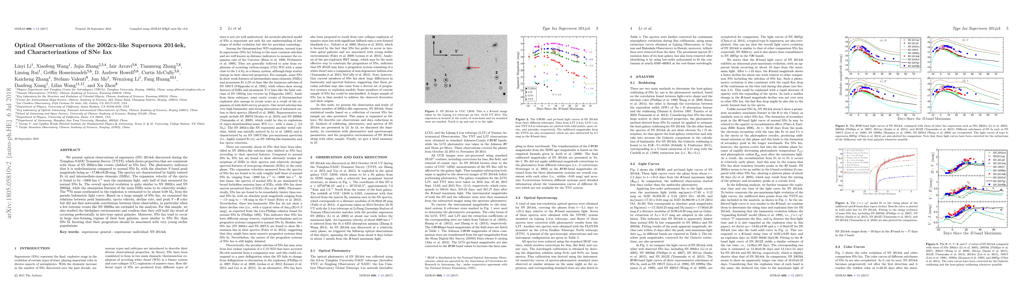 We present optical observations of supernova (SN) 2014ek discovered during the Tsinghua-NAOC Transient Survey (TNTS), which shows properties that are consistent with those of SN 2002cx-like events (dubbed as SNe Iax). The photometry indicates that it is underluminous compared to normal SNe Ia, with the absolute $V$-band peak magnitude being as $-17.66\pm0.20$ mag. The spectra are characterized by highly ionized Fe III and intermediate-mass elements (IMEs). The expansion velocity of the ejecta is found to be $\sim$5000 km s$^{-1}$ near the maximum light, only half of that measured for normal SNe Ia. The overall spectral evolution is quite similar to SN 2002cx and SN 2005hk, while the absorption features of the main IMEs seem to be relatively weaker. The ${}^{56}$Ni mass synthesized in the explosion is estimated to be about 0.08 M$_{\odot}$ from the pseudo bolometric light curve. Based on a large sample of SNe Iax, we examined the relations between peak luminosity, ejecta velocity, decline rate, and peak $V - R$ color but did not find noticeable correlations between these observables, in particular when a few extreme events like SN 2008ha are excluded in the analysis. For this sample, we also studied the birthplace environments and confirm that they still hold the trend of occurring preferentially in late-type spiral galaxies. Moreover, SNe Iax tend to occur in large star-forming regions of their host galaxies, more similar to SNe Ibc than SNe II, favoring that their progenitors should be associated with very young stellar populations.